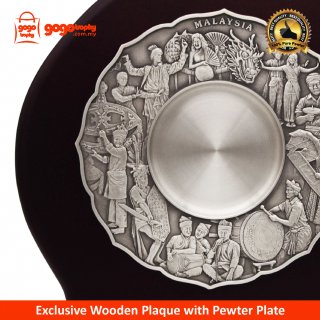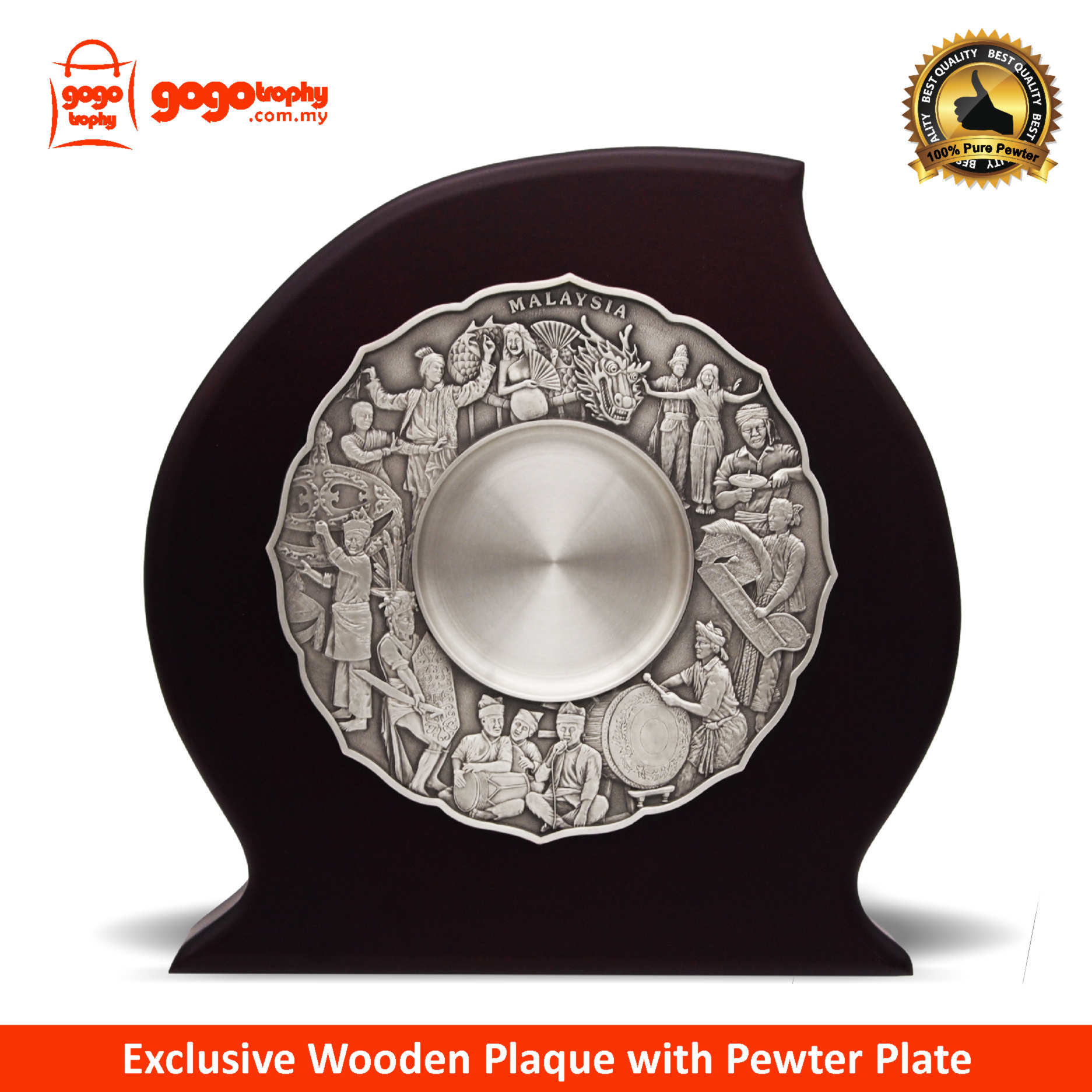 7233 - Wooden Plaque With Cultural Dance Pewter Plate . FREE PRINTING !
