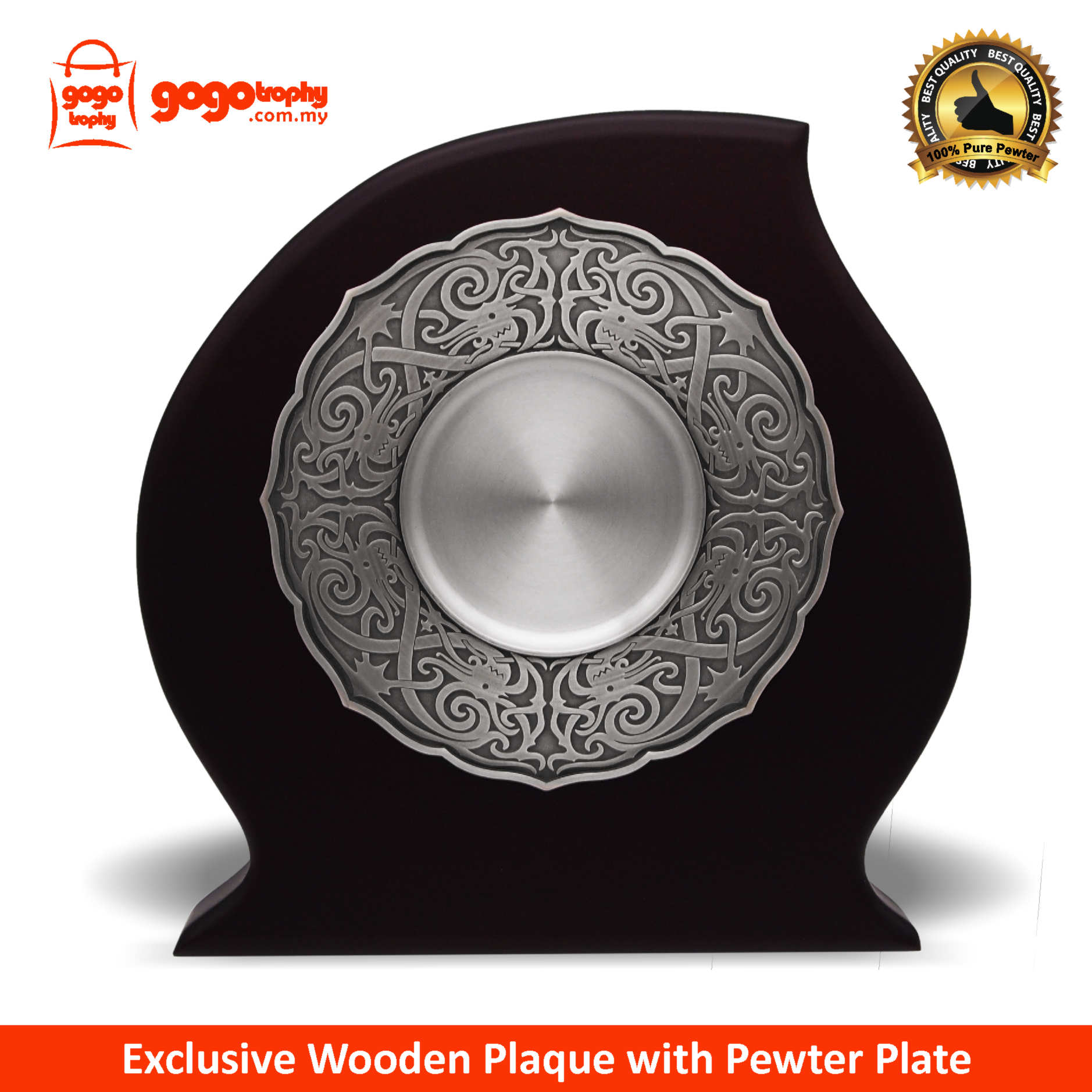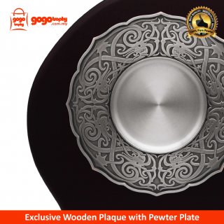 P-7605 - Wooden Plaque With Traditional Motion Pewter Tray . FREE PRINTING !