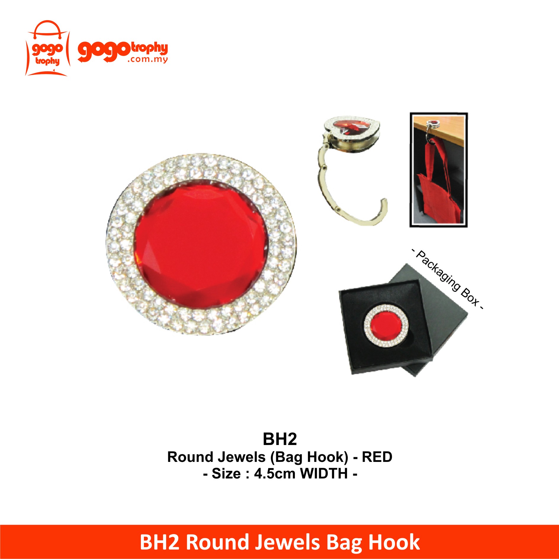 BH2 Round Jewels (Bag Hook) pricing is per pcs without printing charges,if needed any additional for printing pls send us enquiry we will reply you as soon as possible . ASK FOR PRICE !