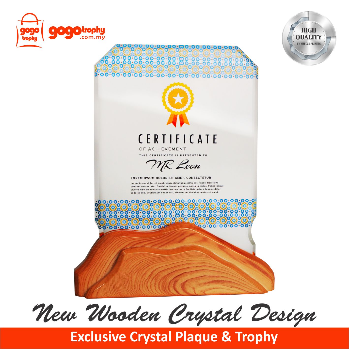 3107 Exclusive Wooden Crystal Plaque the new mixtures highly-performance hybrid technologies with combination of UV-LED EMBOSS PRINTING will feature it's own special touch feeling and unique colours finished product . The noble qualities of the products will bring englightenment and will be loved by the consumers . FREE UV EMBOSS PRINTING !