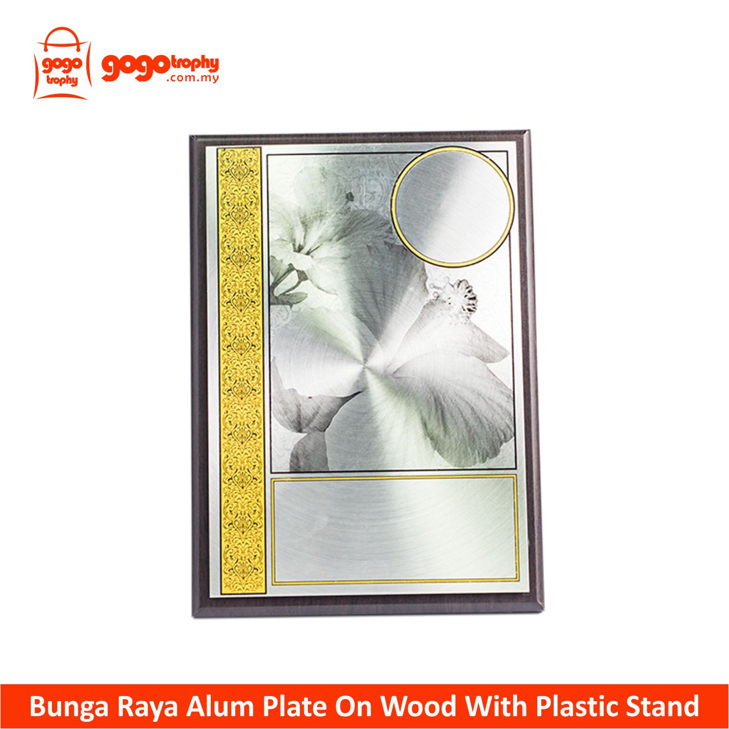 EP294 - Bunga Raya Alum Plate On Wood With Plastic Stand . FREE PRINTING ! NOT INCLUDED POSTAGE YET...MOQ 10PCS ABOVE FOR THIS PRICE !!!