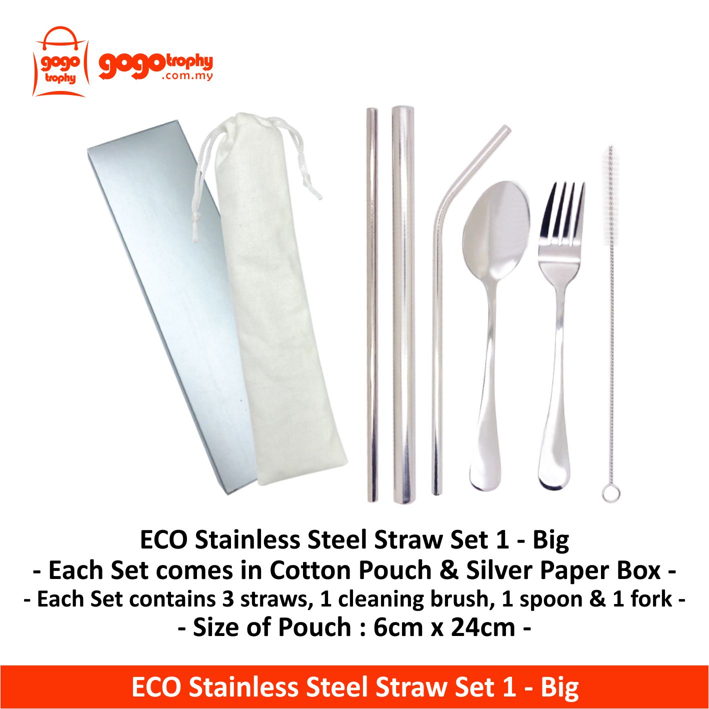 ECO Stainless Steel Straw Set 1 (Big) pricing is per pcs without printing charges,if needed any additional for printing pls send us enquiry we will reply you as soon as possible . ASK FOR PRICE !