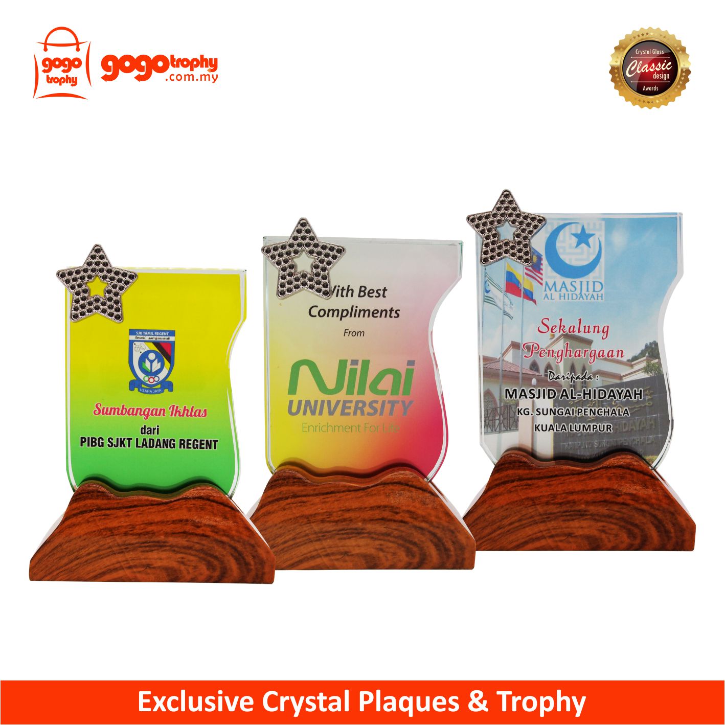 8319 Exclusive Crystal Plaques are the quality of the film that we used is one of the best . As such, the colors of the printing on the film will not be easily faded . FREE PRINTING !
