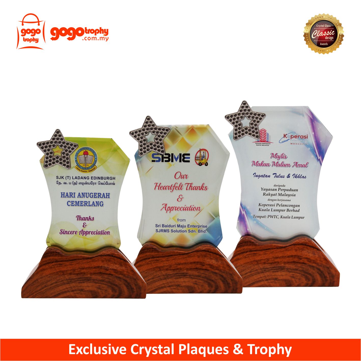 8329 Exclusive Crystal Plaques are the quality of the film that we used is one of the best . As such, the colors of the printing on the film will not be easily faded . FREE PRINTING !