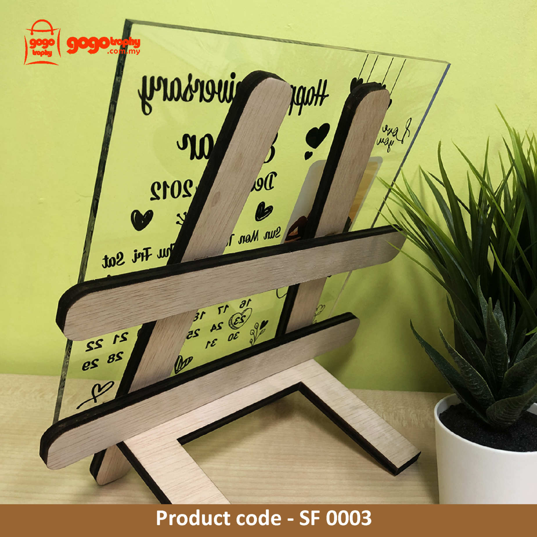 SF0003 Acrylic Sheet with Wooden Stand. FREE PRINTING !