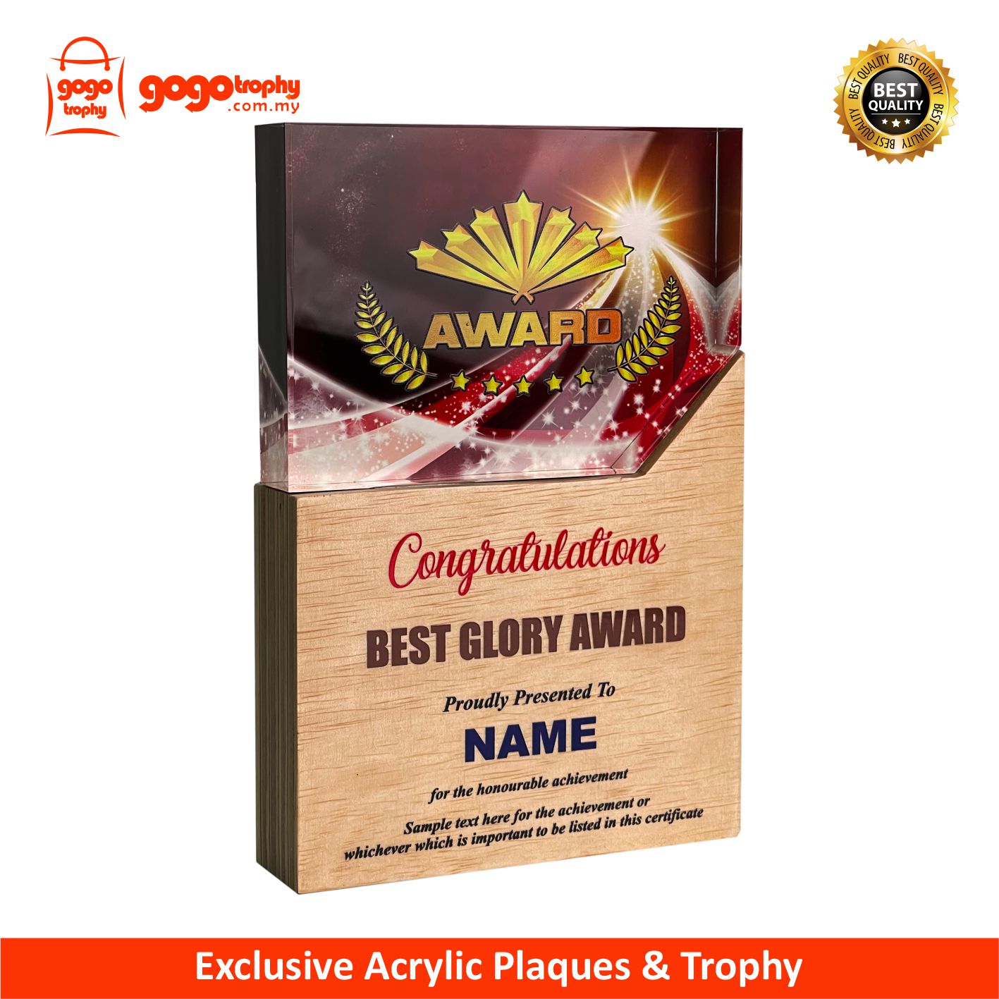 5109 Acrylic Wooden Plaque the new mixtures highly-performance hybrid technologies with combination of UV-LED EMBOSS PRINTING will feature it's own special touch feeling and unique colours finished product . The noble qualities of the products will bring englightenment and will be loved by the consumers . FREE UV EMBOSS PRINTING !