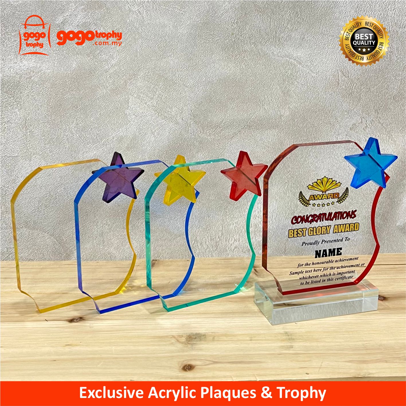 5123 Star Acrylic Plaque the new mixtures highly-performance hybrid technologies with combination of UV-LED EMBOSS PRINTING will feature it's own special touch feeling and unique colours finished product . The noble qualities of the products will bring englightenment and will be loved by the consumers . FREE UV EMBOSS PRINTING !