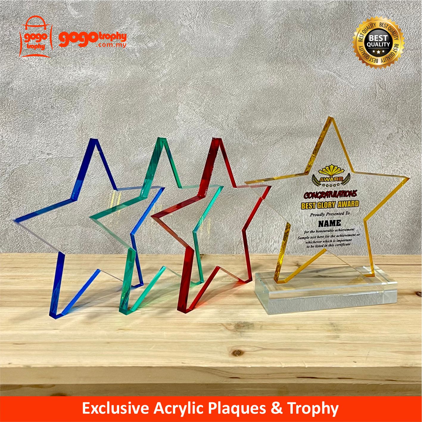 5126 Star Acrylic Plaque the new mixtures highly-performance hybrid technologies with combination of UV-LED EMBOSS PRINTING will feature it's own special touch feeling and unique colours finished product . The noble qualities of the products will bring englightenment and will be loved by the consumers . FREE UV EMBOSS PRINTING !