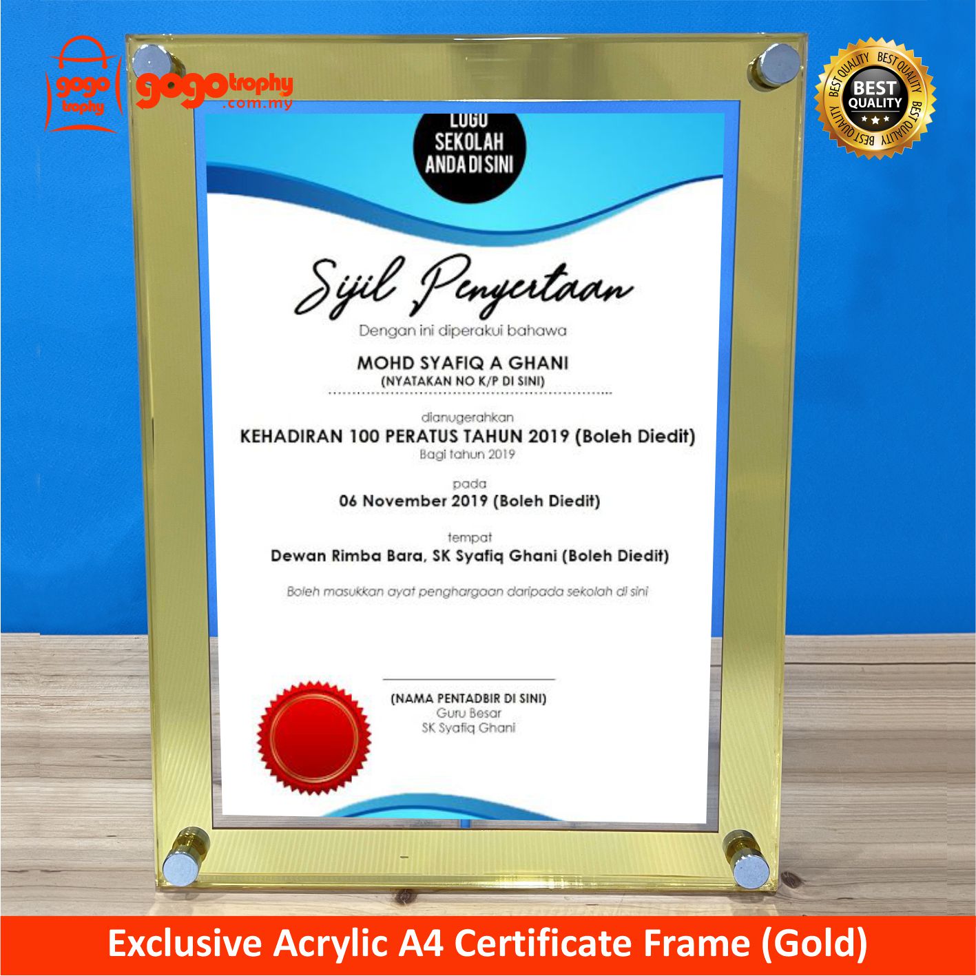 5143 Acrylic A4 Size Certificate Frame (Gold) . NO PRINTING !