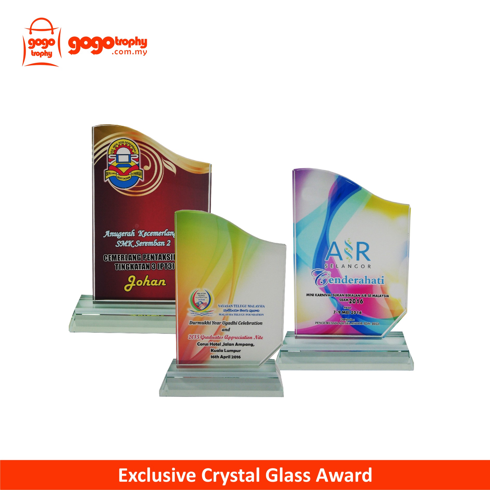 8291(GB) Exclusive Crystal Glass Awards are the quality of the film that we used is one of the best . As such, the colors of the printing on the film will not be easily faded . FREE PRINTING !