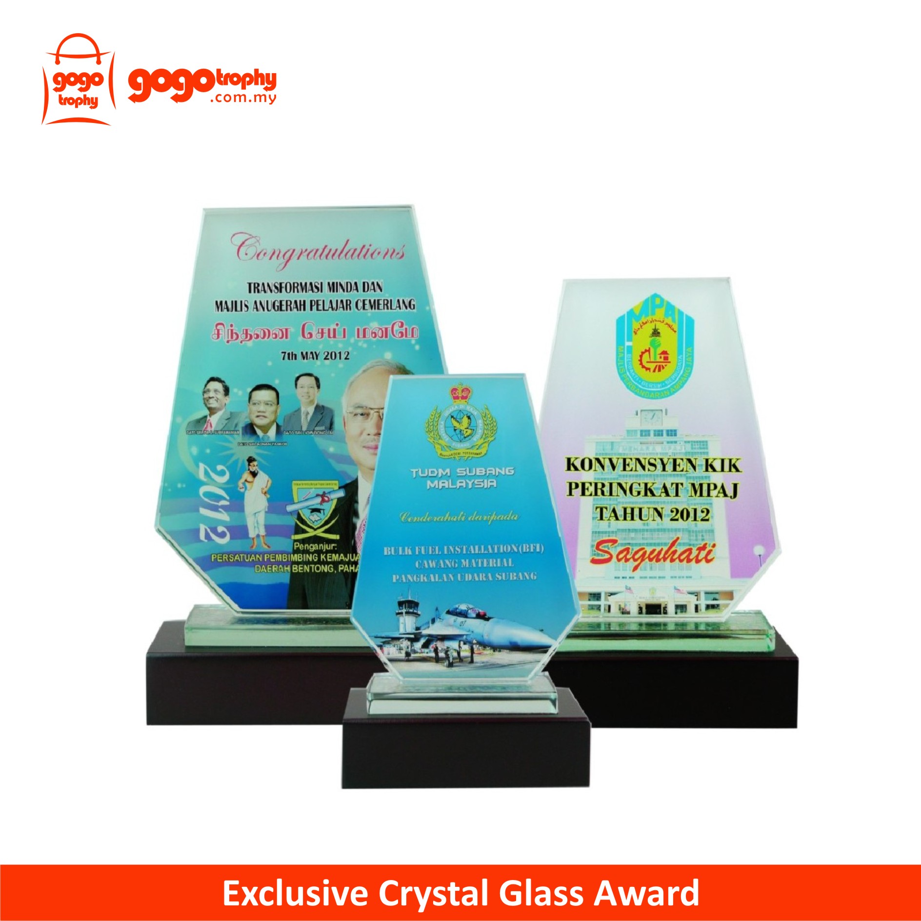 8000 Exclusive Crystal Glass Awards are the quality of the film that we used is one of the best . As such, the colors of the printing on the film will not be easily faded . FREE PRINTING !