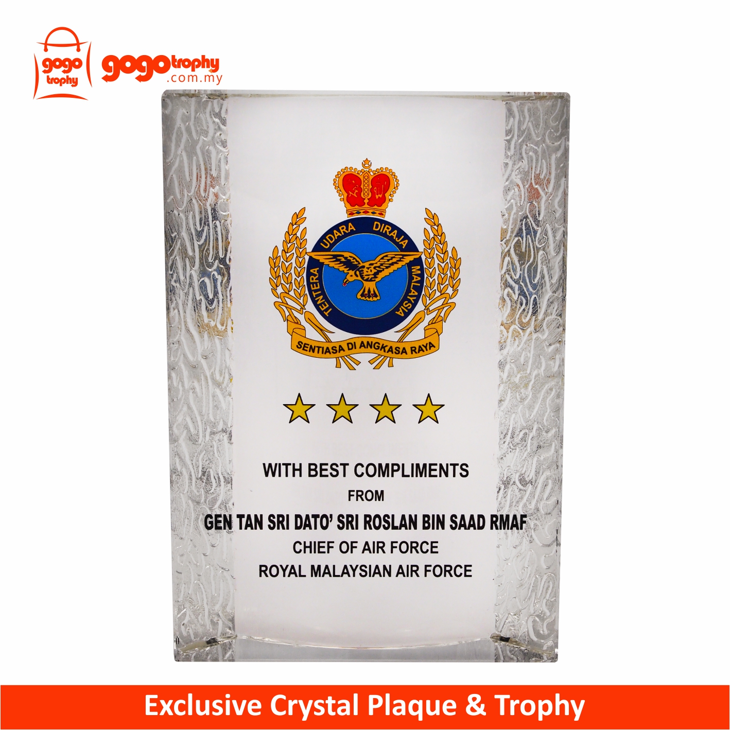 3086 Exclusive Crystal Plaque the new mixtures highly-performance hybrid technologies with combination of UV-LED EMBOSS PRINTING will feature it's own special touch feeling and unique colours finished product . The noble qualities of the products will bring englightenment and will be loved by the consumers . FREE UV EMBOSS PRINTING !