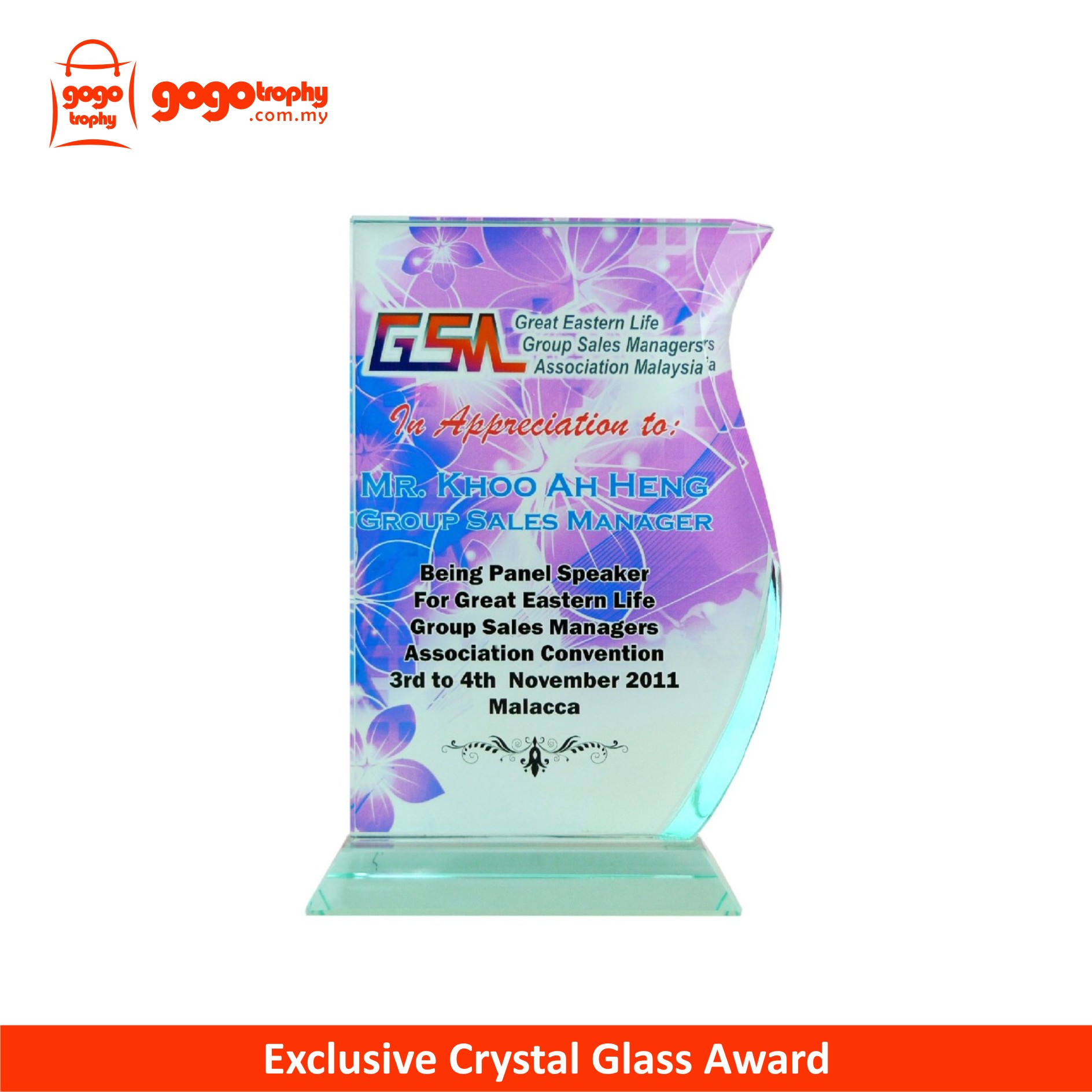 8063 Exclusive Crystal Glass Awards are the quality of the film that we used is one of the best . As such, the colors of the printing on the film will not be easily faded . FREE PRINTING !