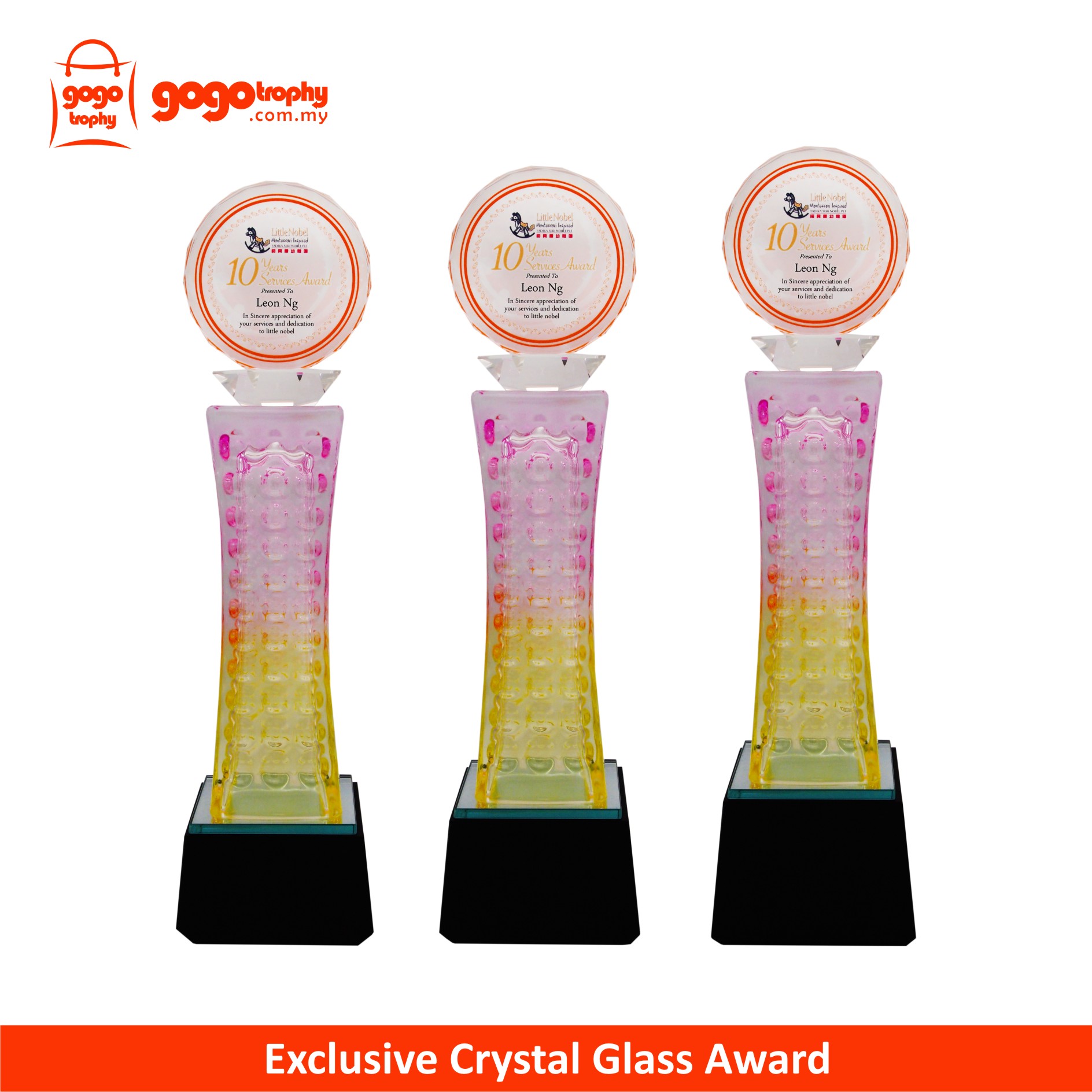 8293 Exclusive Crystal Glass Awards are the quality of the film that we used is one of the best . As such, the colors of the printing on the film will not be easily faded . FREE PRINTING !