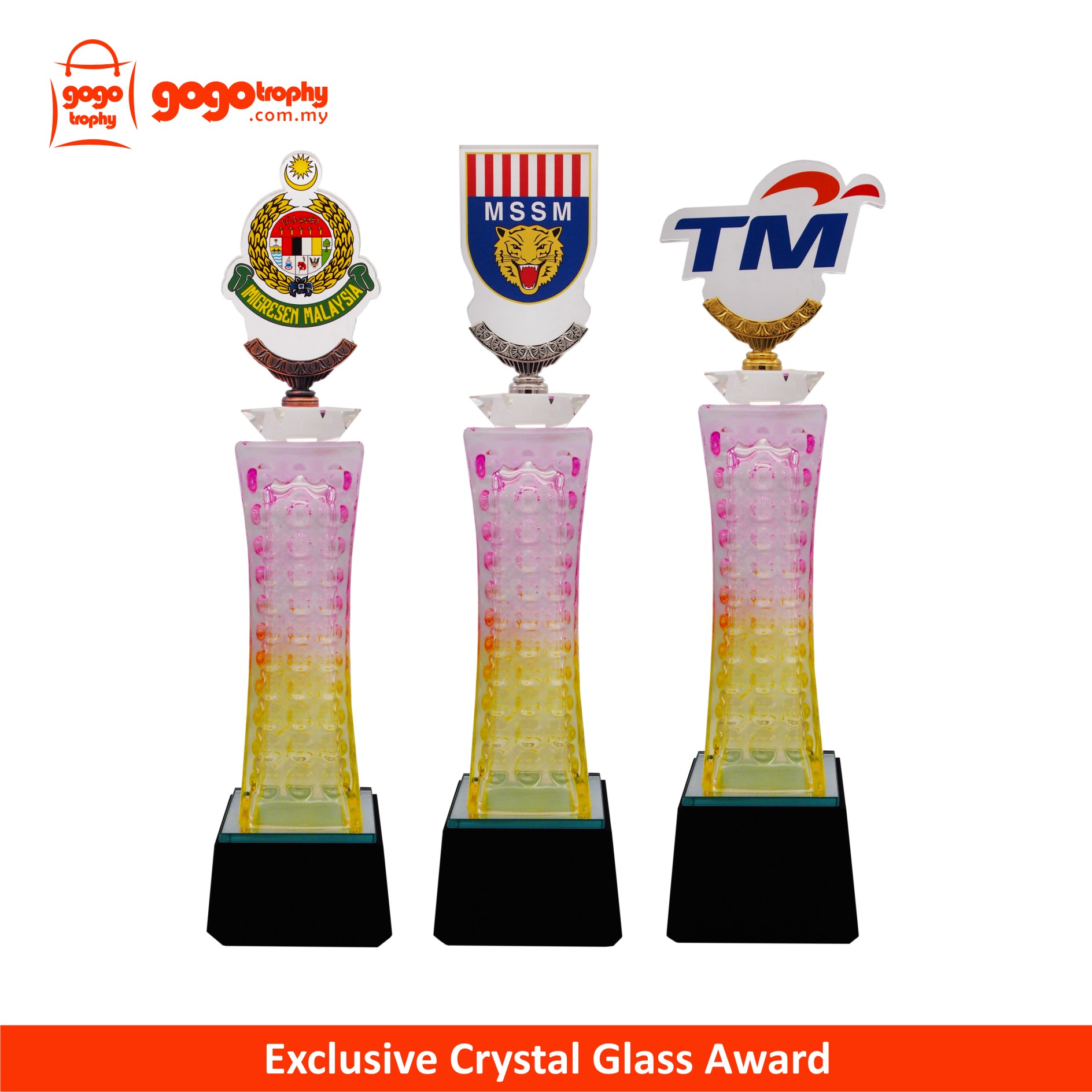 8294 Exclusive Crystal Glass Awards With Acrylic are the quality of the film that we used is one of the best . As such, the colors of the printing on the film will not be easily faded . FREE PRINTING !