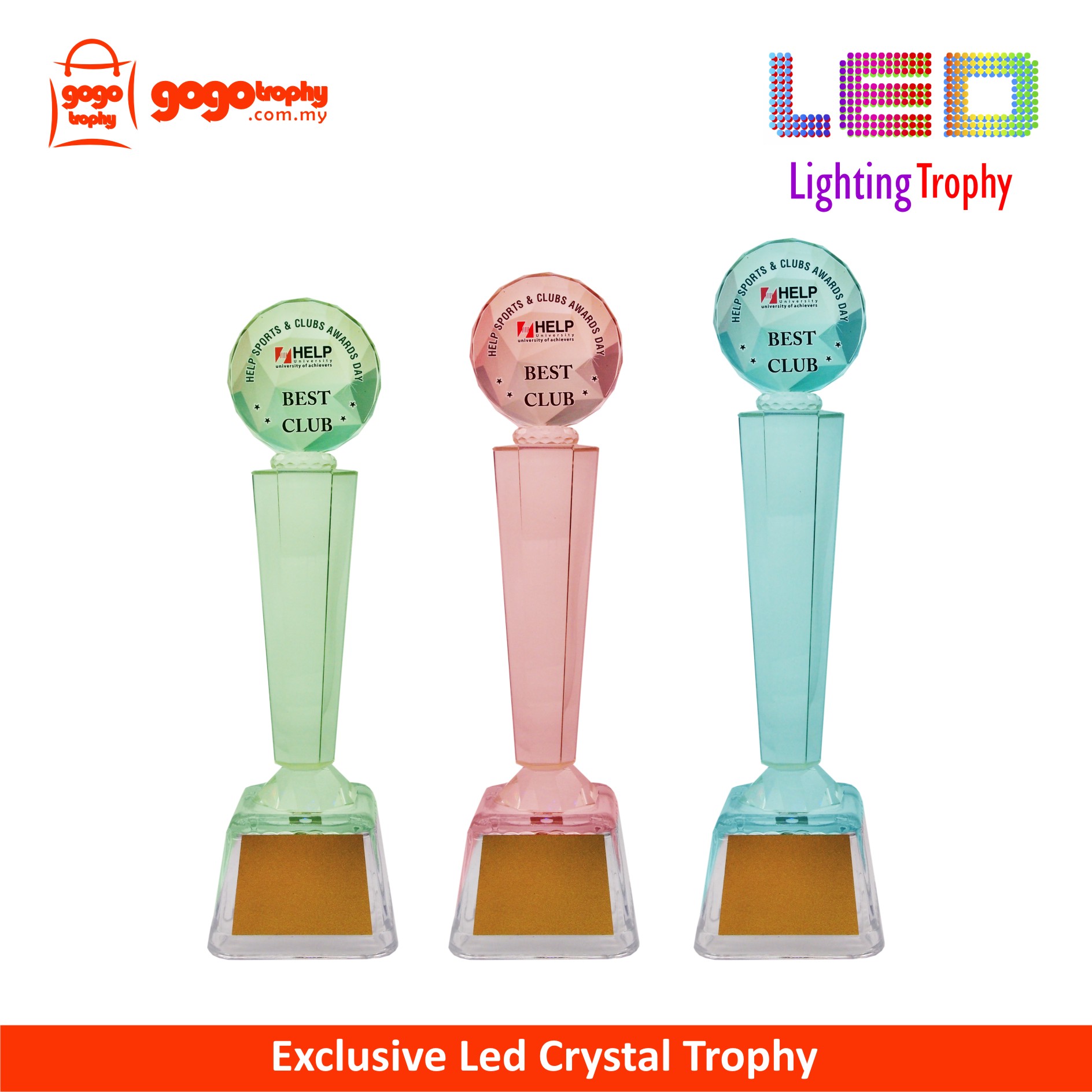 8302 LED Lighting Trophy are the quality of the film that we used is one of the best . As such, the colors of the printing on the film will not be easily faded . FREE PRINTING !