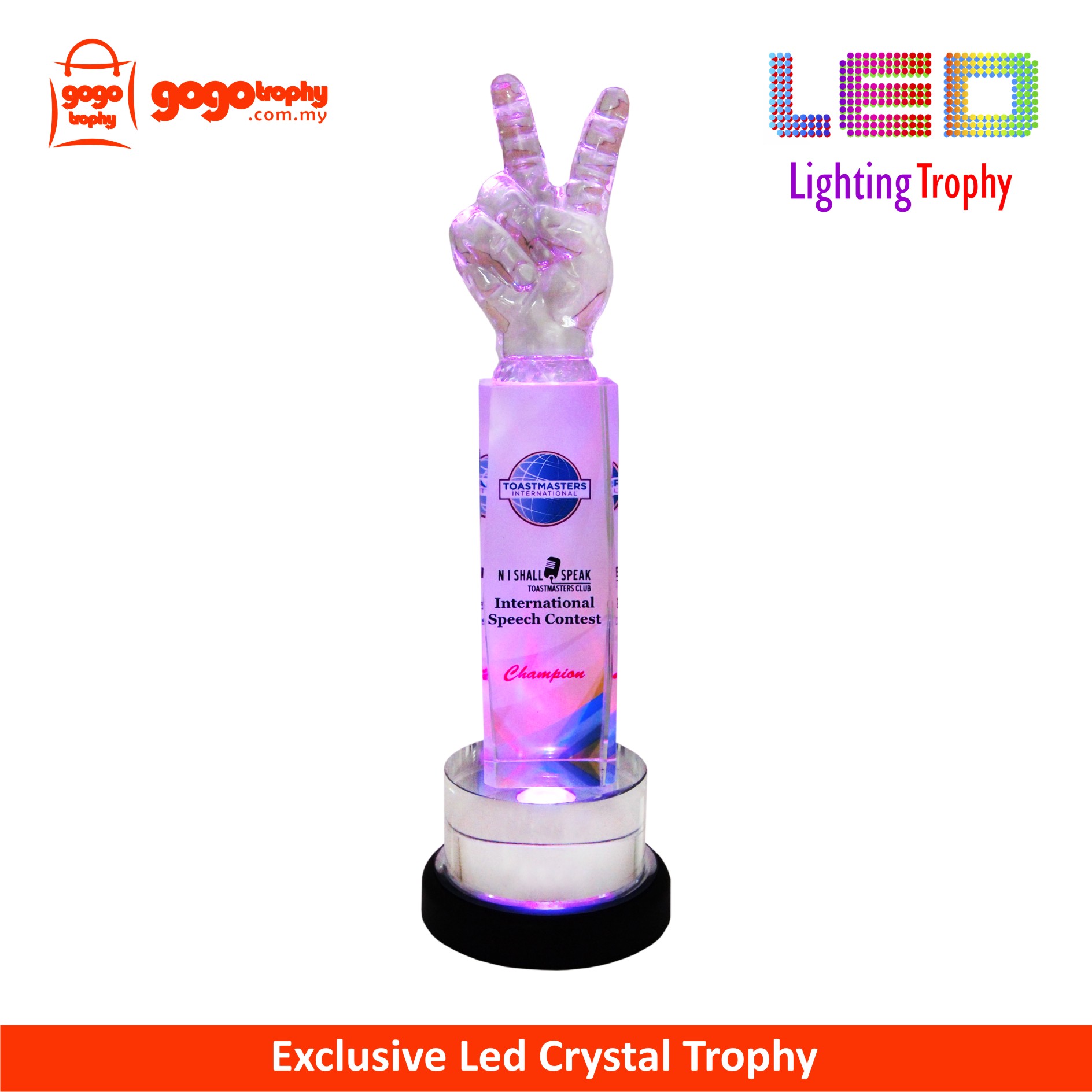 8268 LED Lighting Trophy are the quality of the film that we used is one of the best . As such, the colors of the printing on the film will not be easily faded . FREE PRINTING !