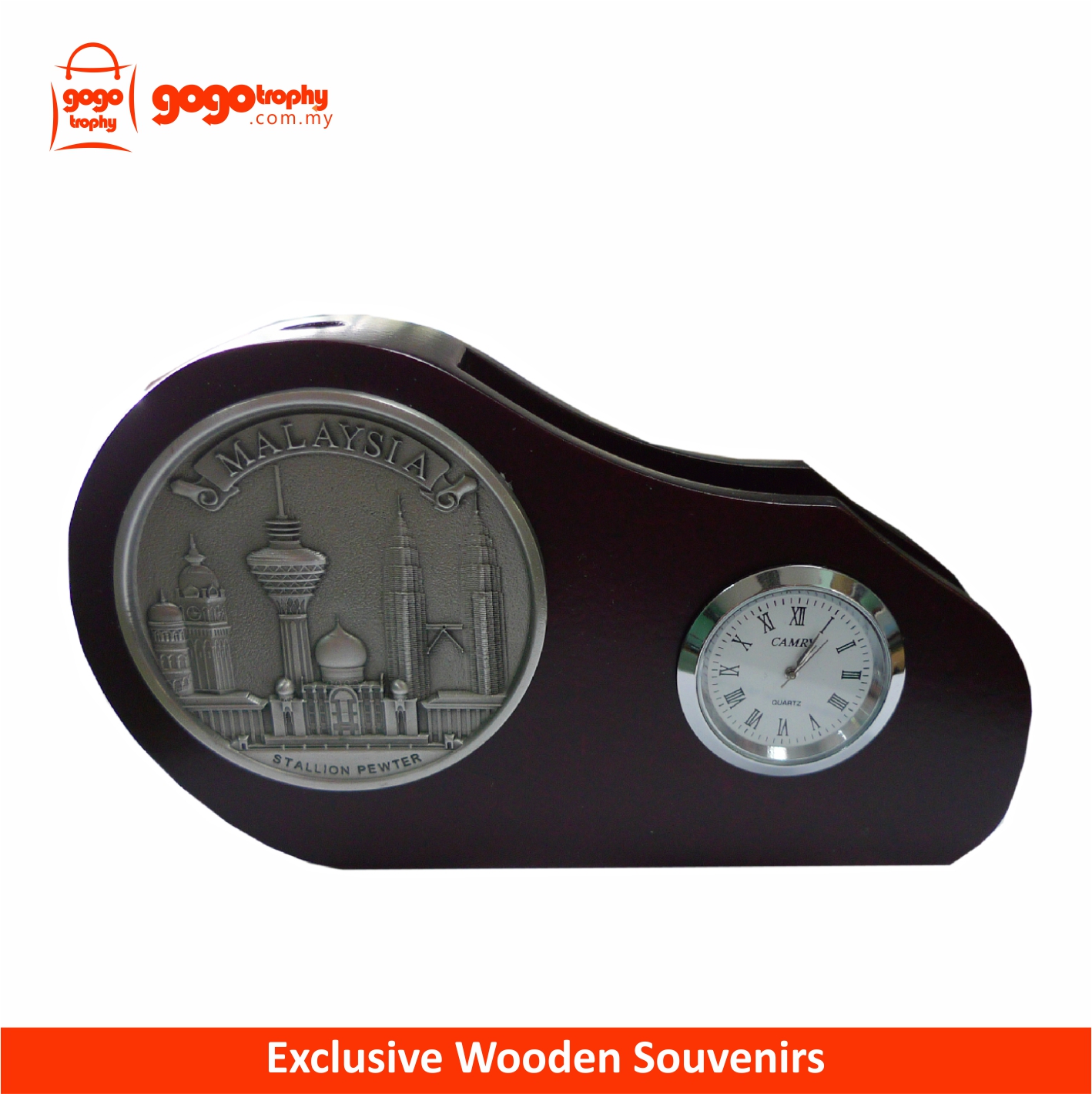 7593 - Wooden NC Holder & Pen Holder With Clock