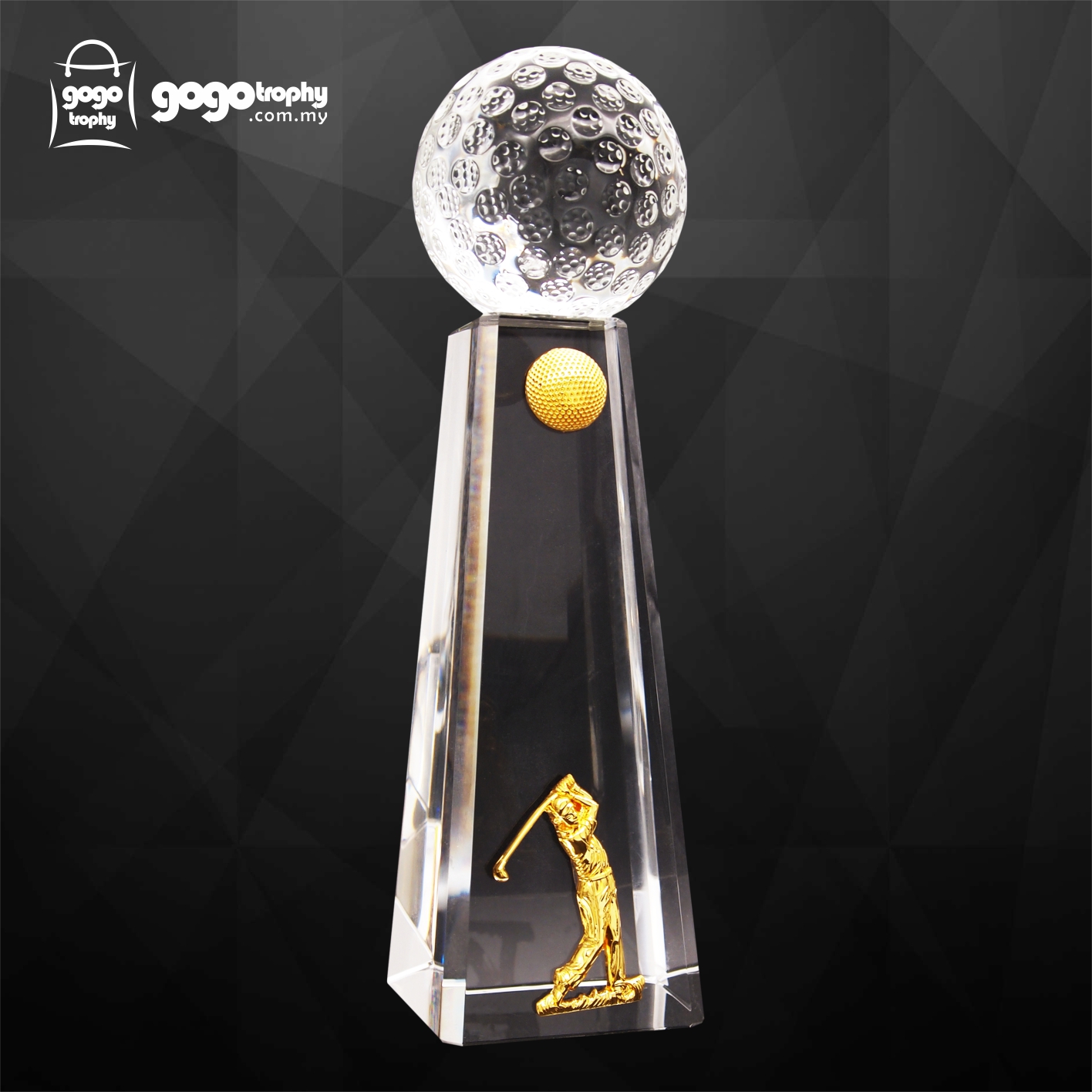 9281A - Exclusive Crystal Golf Trophy - 270mm * 80mm * 80mm (