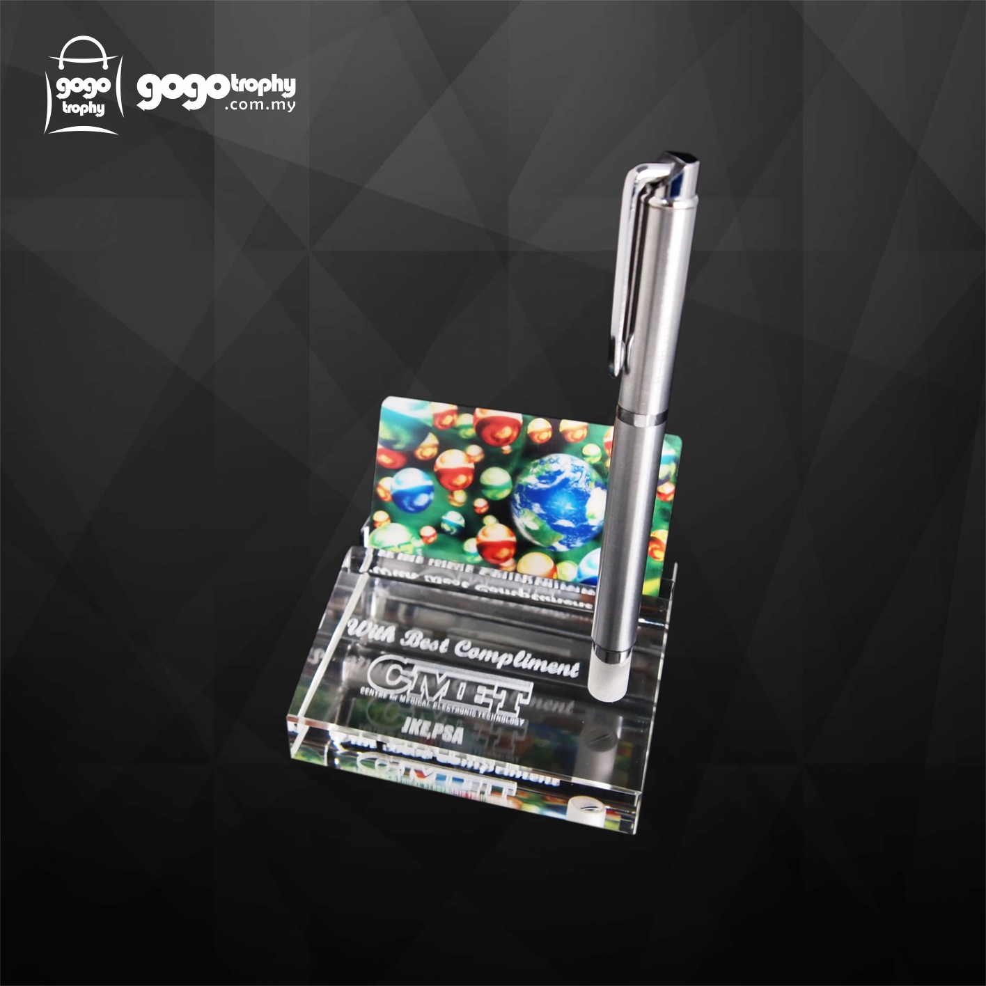 9162 Crystal Namecard & Pen Holder Paper Weight