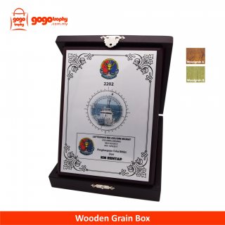 7054 Wooden Grain Box c/w Alum Plate Printing . FREE PRINTING !