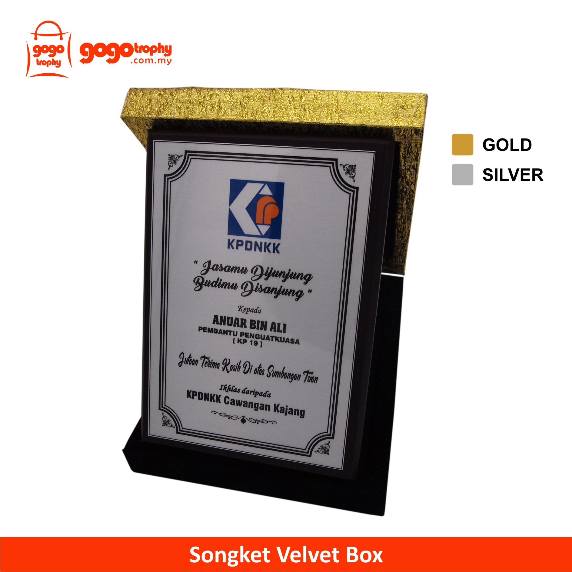 7146 Songket Velvet Box c/w Alum Plate Printing . FREE PRINTING !