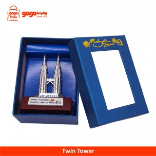 2.8" Twin Tower Wood Base (Silver) - 90mm * 65mm * 48mm (