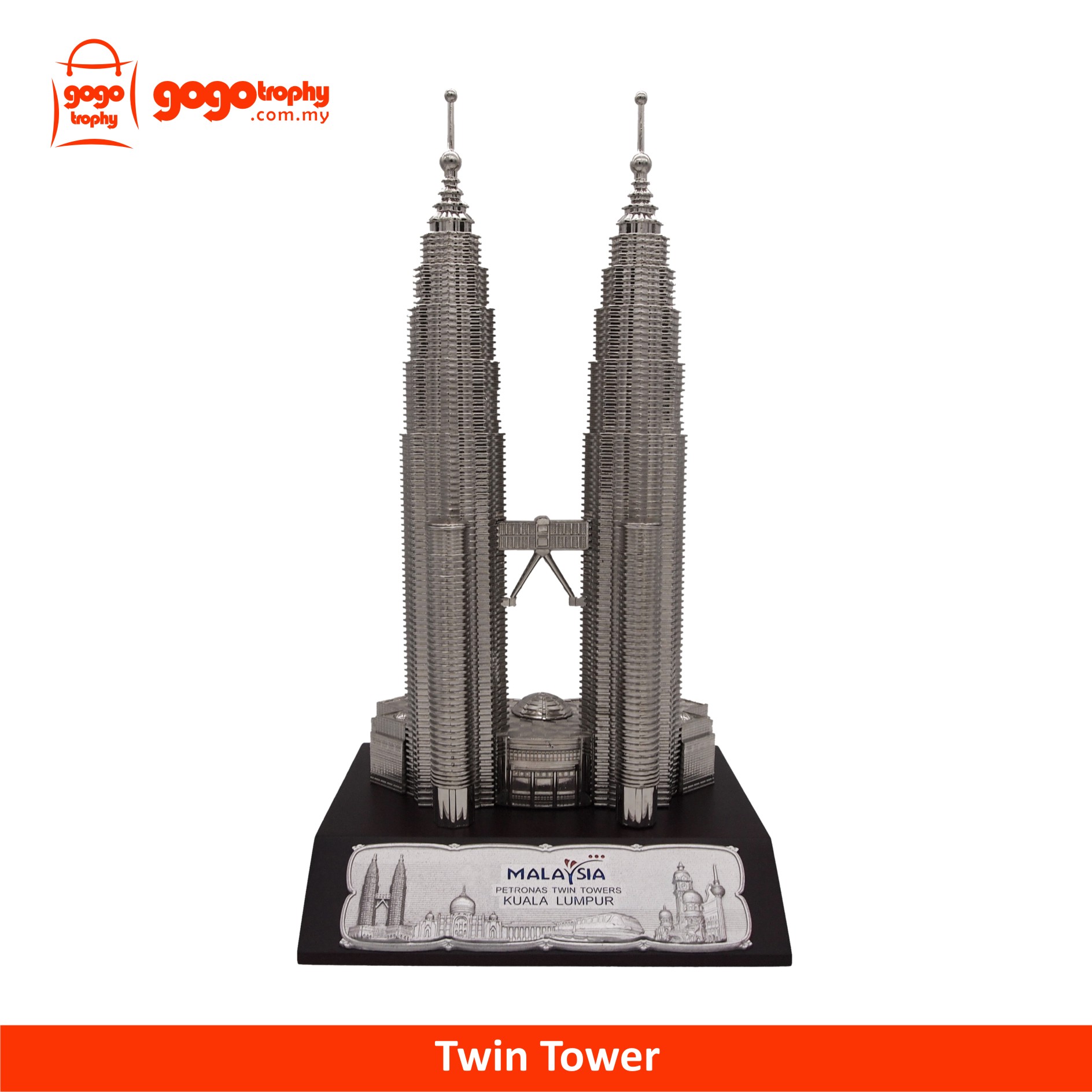 12" KL Tower Wood Base No Clock (Chromed) - 360mm * 195mm * 176mm (