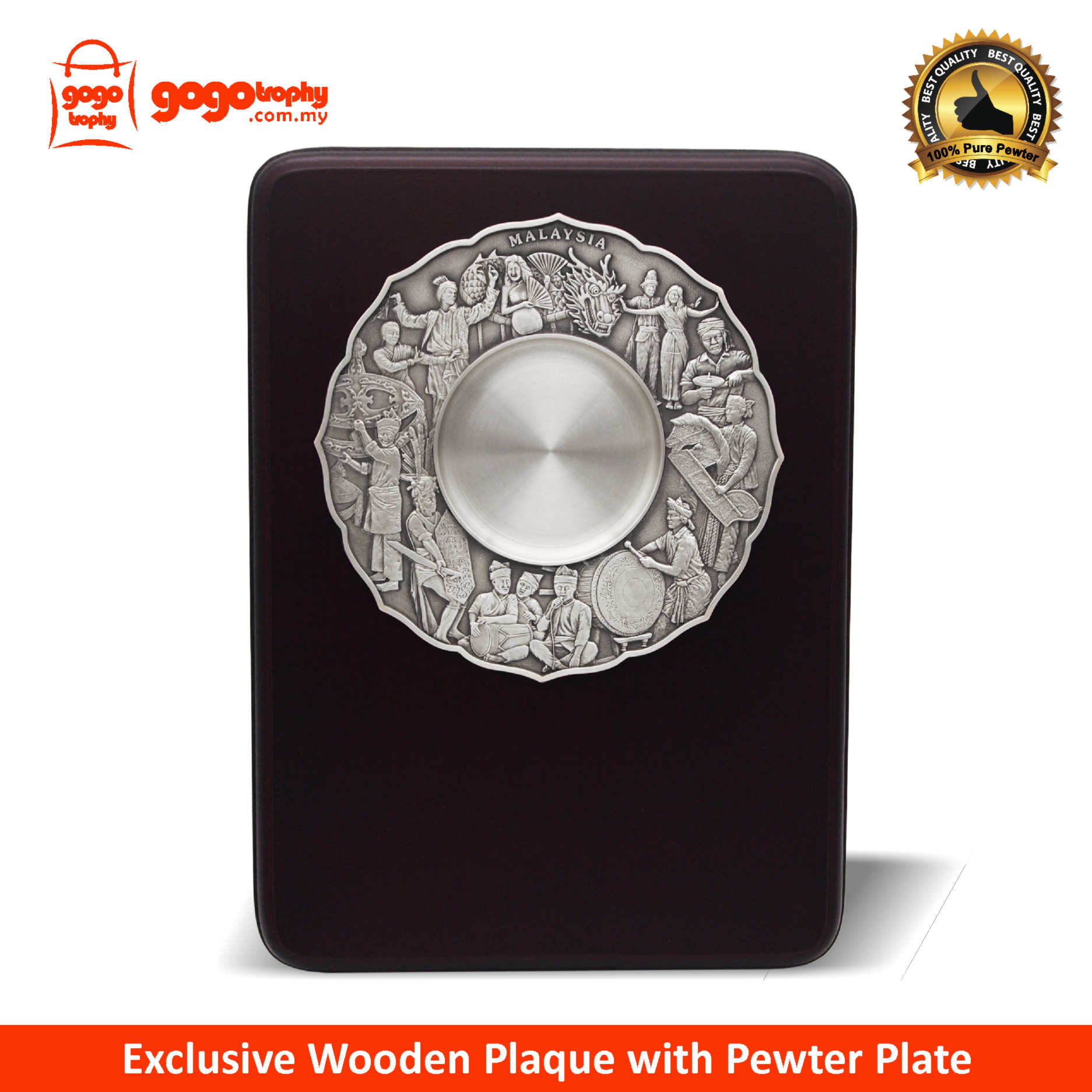 7236 - Wooden Plaque With Cultural Dance Pewter Plate . FREE PRINTING !