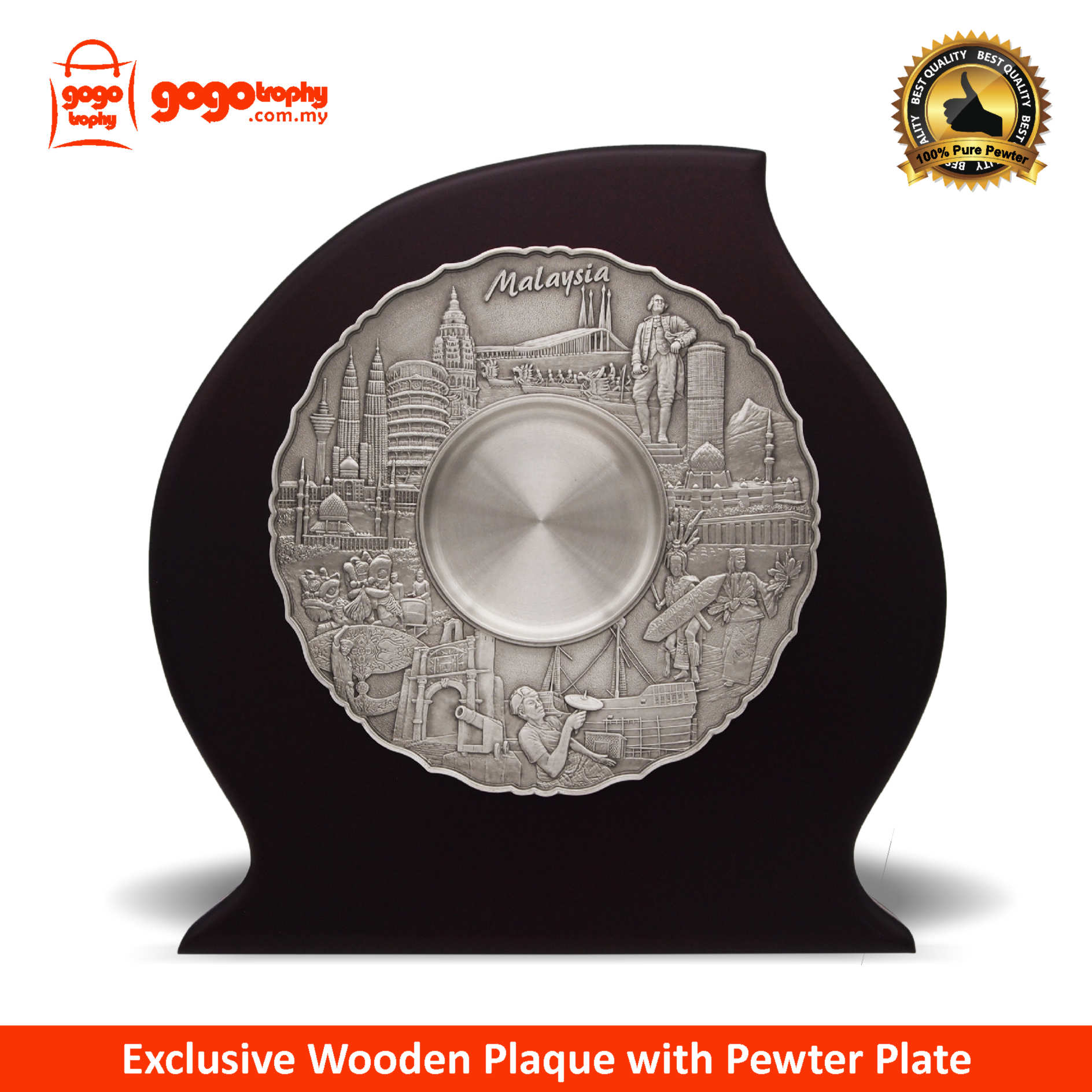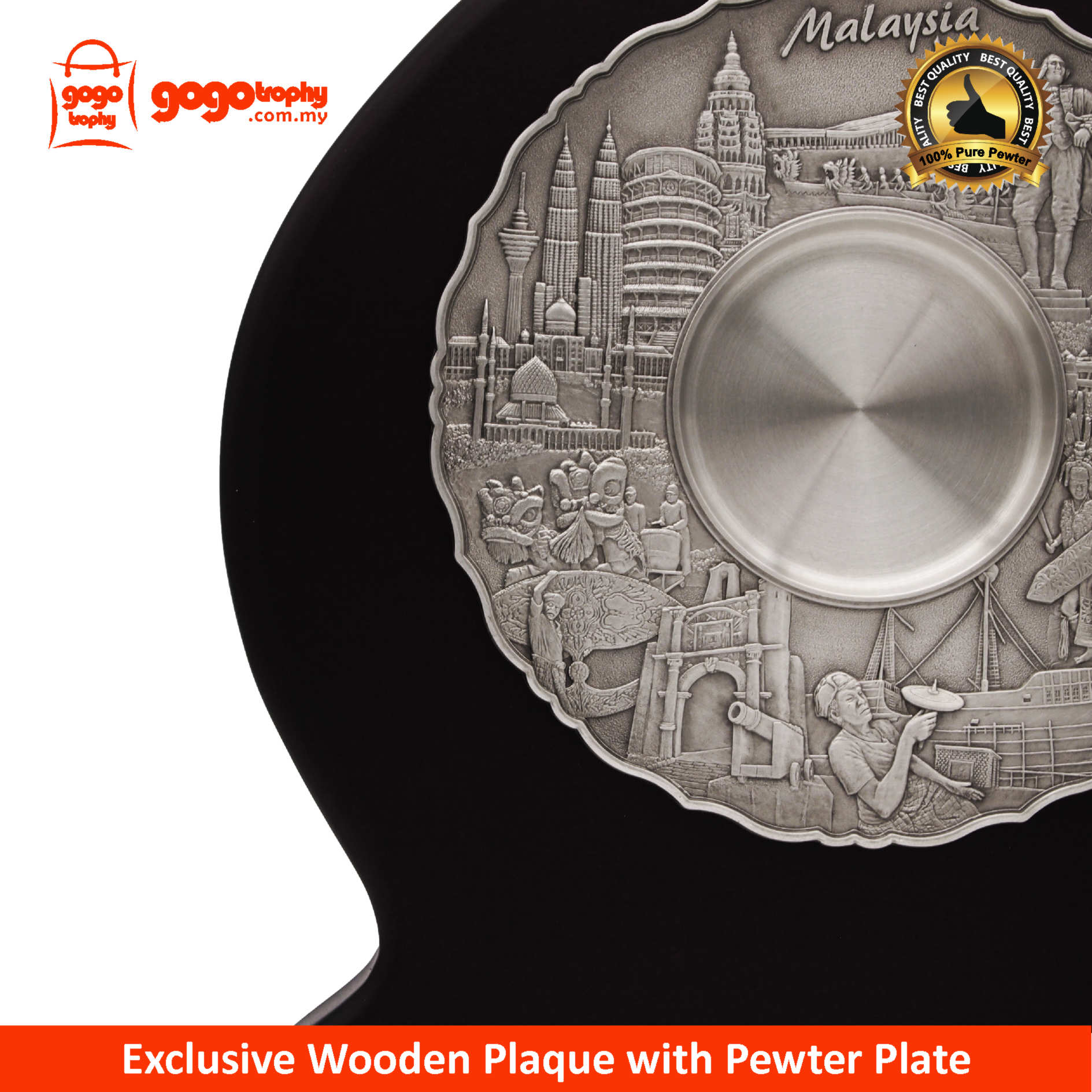 P-7608 - Wooden Plaque With Malaysia Landmark Pewter Tray (KL Tower) . FREE PRINTING !