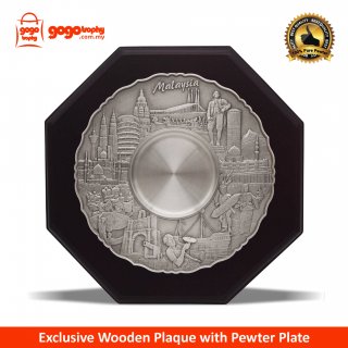 P-7604 - Wooden Plaque With Malaysia Landmark Pewter Tray (KL Tower) . FREE PRINTING !