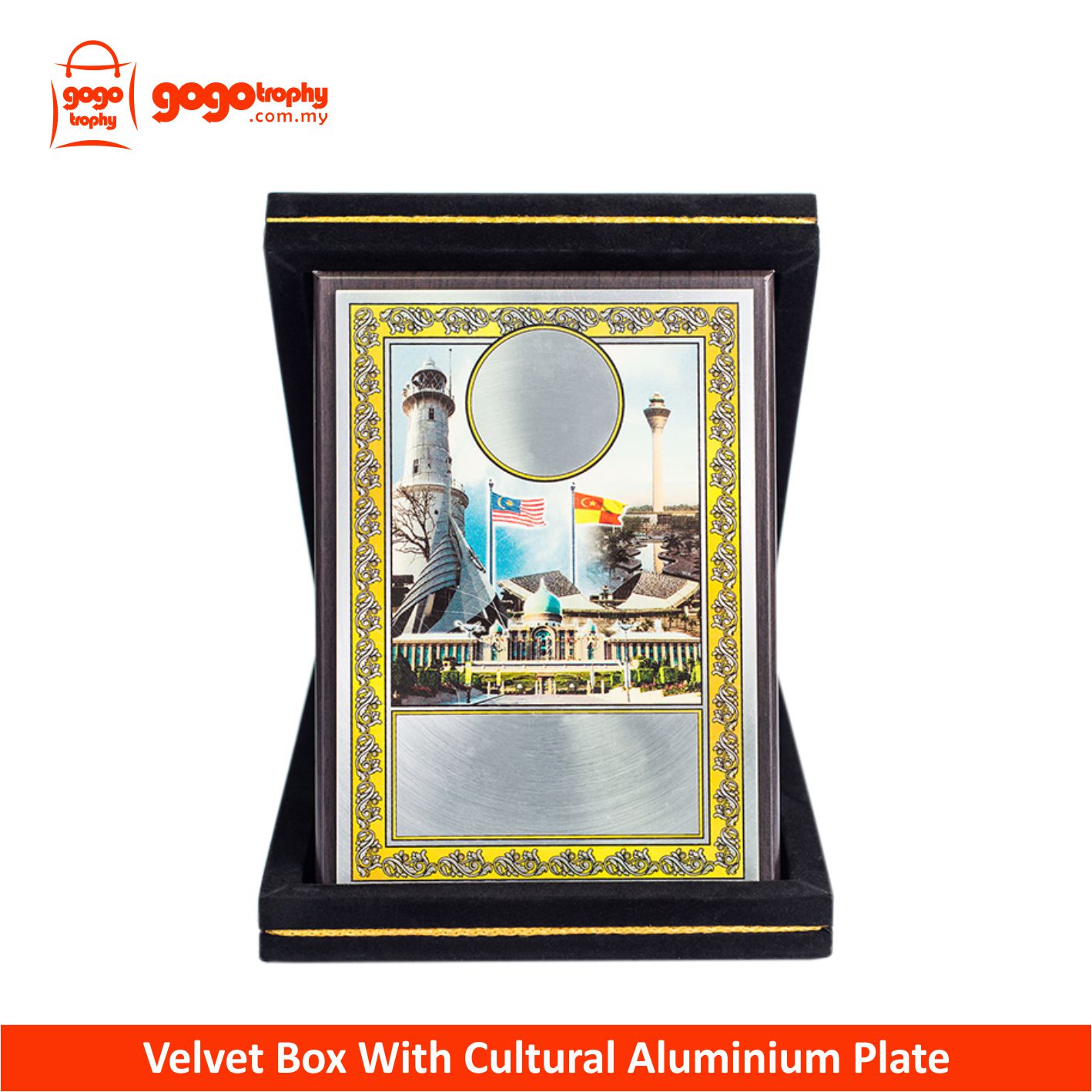 SK237 - Songket Velvet Box With Cultural Aluminium Plate (Selangor) . FREE PRINTING ! NOT INCLUDED POSTAGE YET...MOQ 10PCS ABOVE FOR THIS PRICE !!!