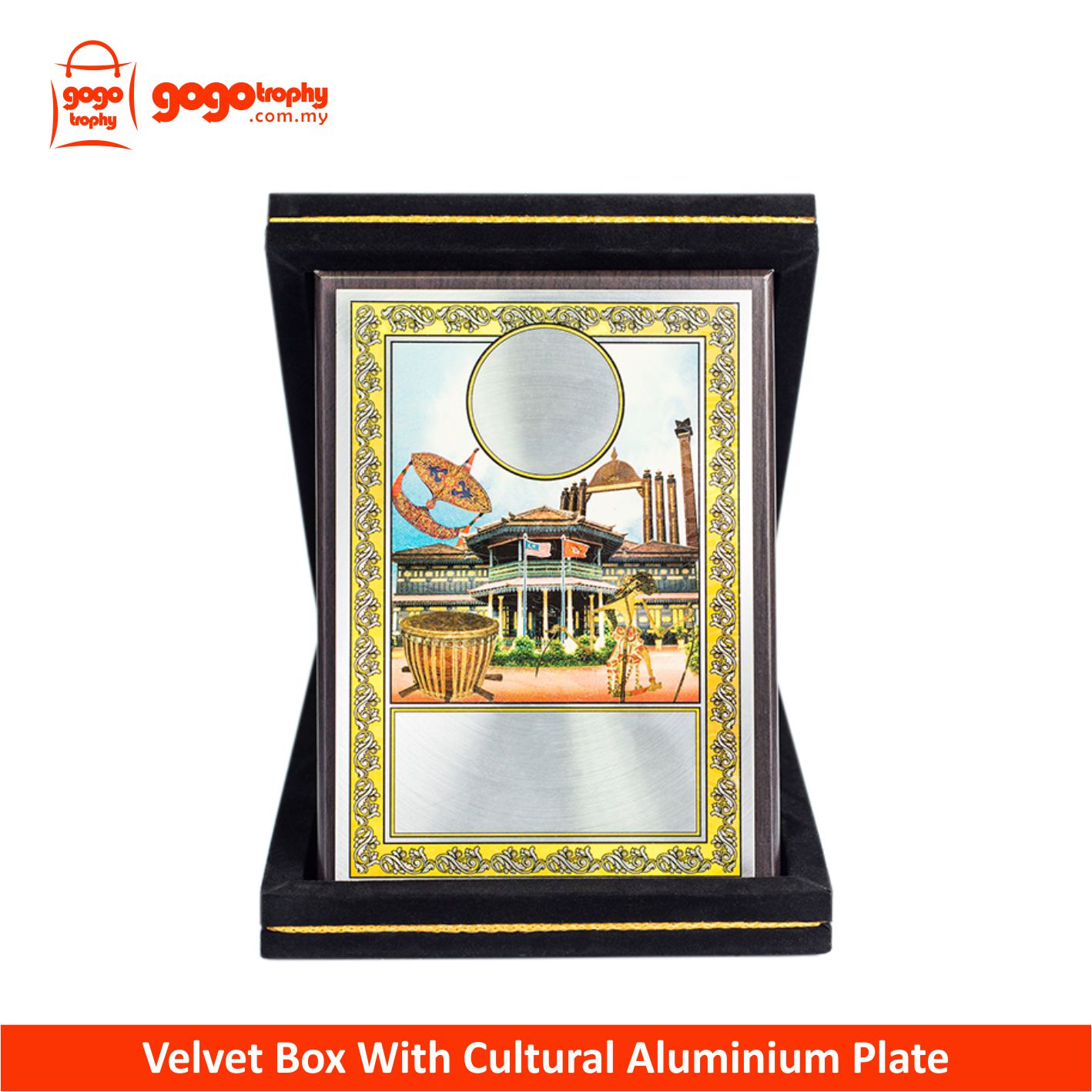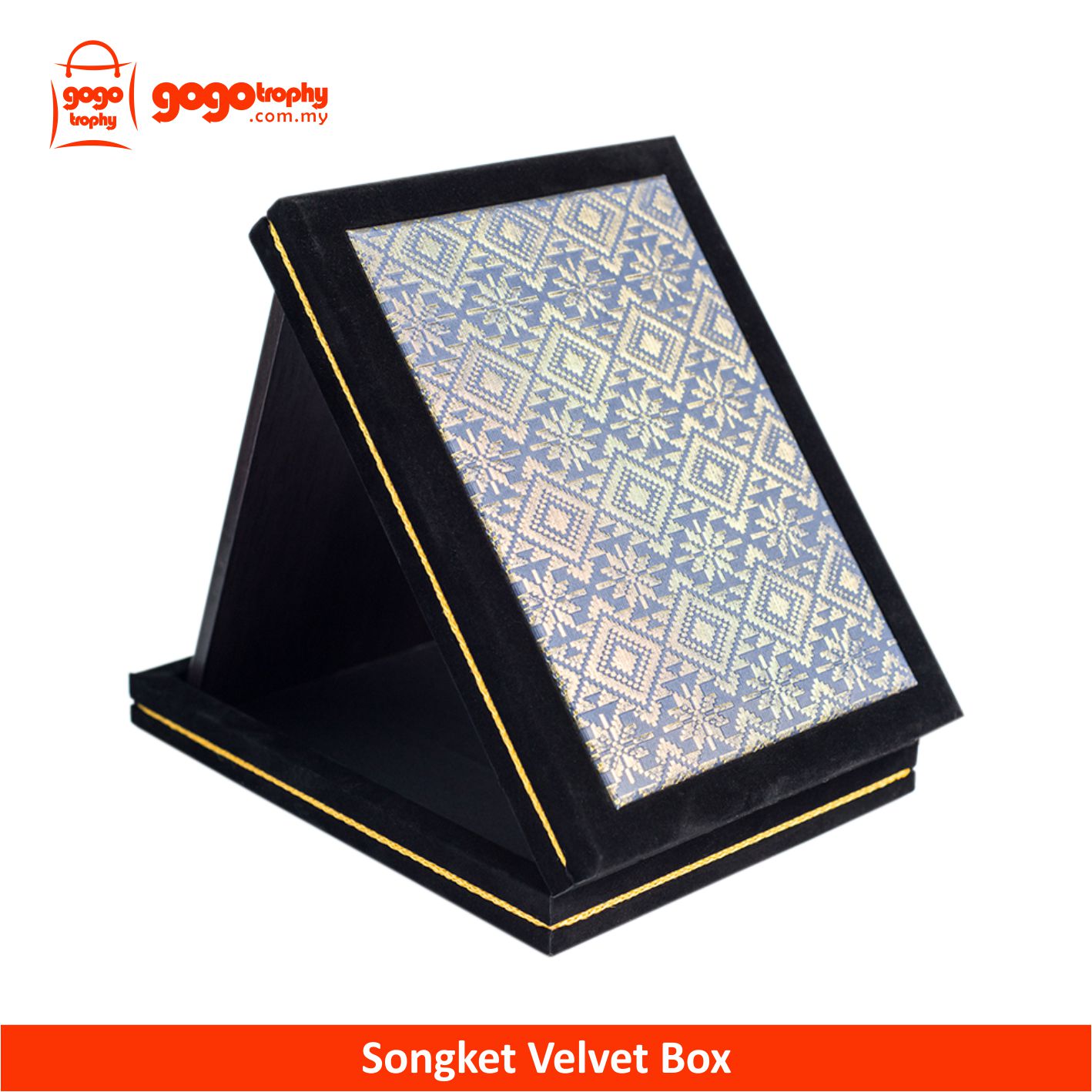 SK237 - Songket Velvet Box With Cultural Aluminium Plate (Kelantan) . FREE PRINTING ! NOT INCLUDED POSTAGE YET...MOQ 10PCS ABOVE FOR THIS PRICE !!!