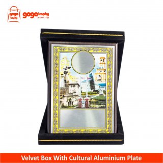 SK237 - Songket Velvet Box With Cultural Aluminium Plate (Johor) . FREE PRINTING ! NOT INCLUDED POSTAGE YET...MOQ 10PCS ABOVE FOR THIS PRICE !!!