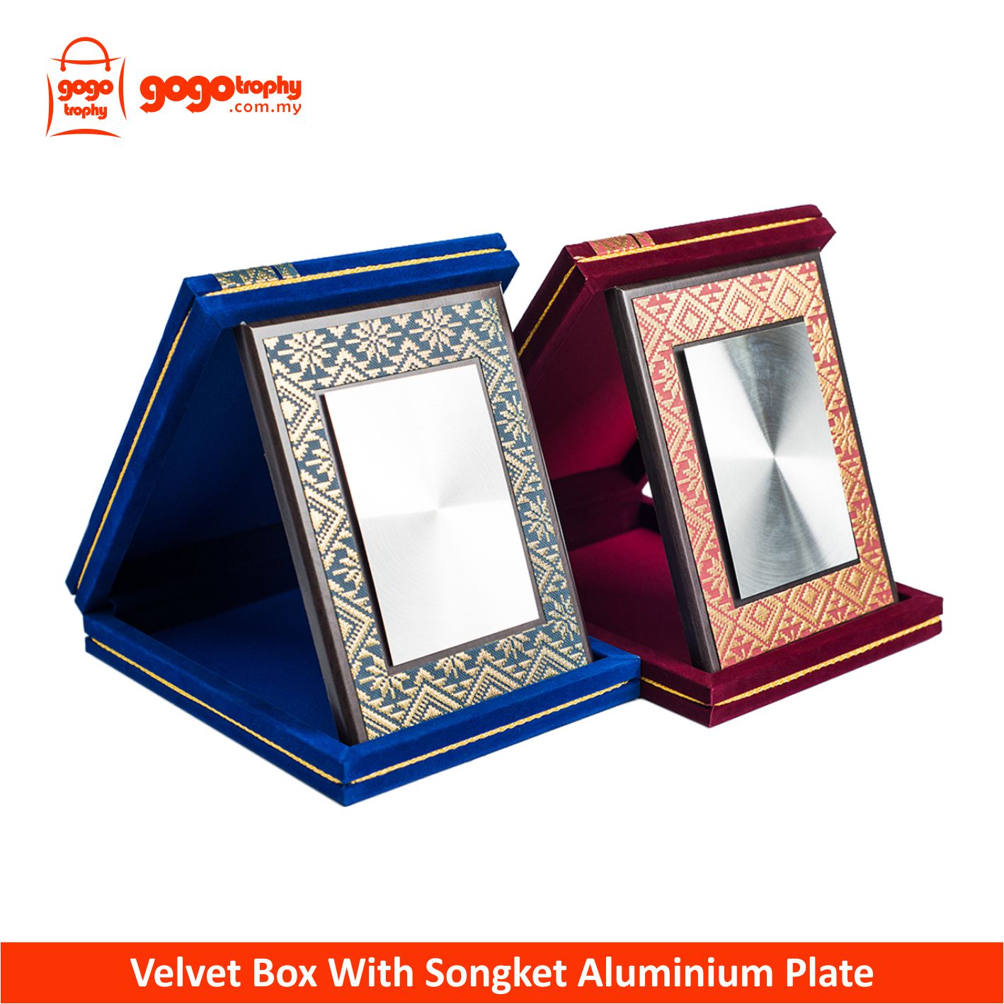 VB253 - Velvet Box With Songket Aluminium Plate . FREE PRINTING ! NOT INCLUDED POSTAGE YET...MOQ 10PCS ABOVE FOR THIS PRICE !!!