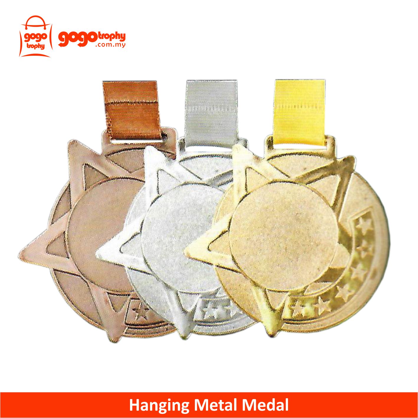 MP355 Hanging Medal Metal (GOLD, SILVER, BRONZE) . FREE PRINTING !