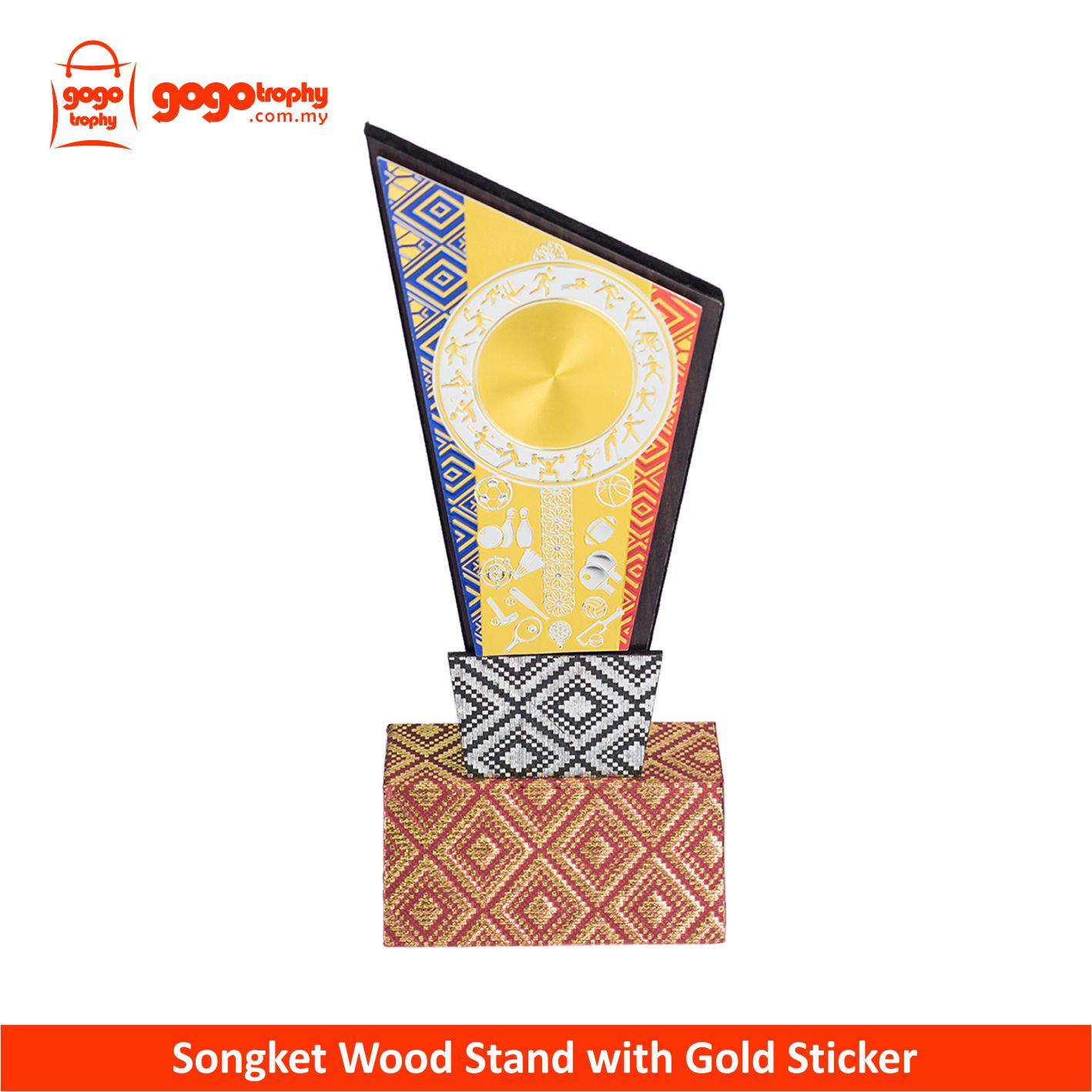 EP675 - Songket Wooden Stand With Gold Sticker . FREE PRINTING ! NOT INCLUDED POSTAGE YET...MOQ 10PCS ABOVE FOR THIS PRICE !!!