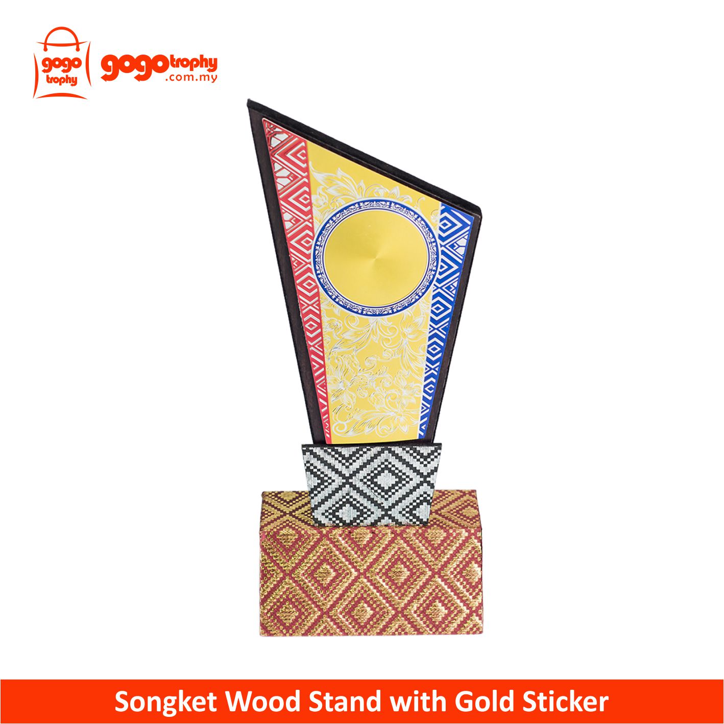 EP677 - Songket Wooden Stand With Gold Sticker . FREE PRINTING ! NOT INCLUDED POSTAGE YET...MOQ 10PCS ABOVE FOR THIS PRICE !!!