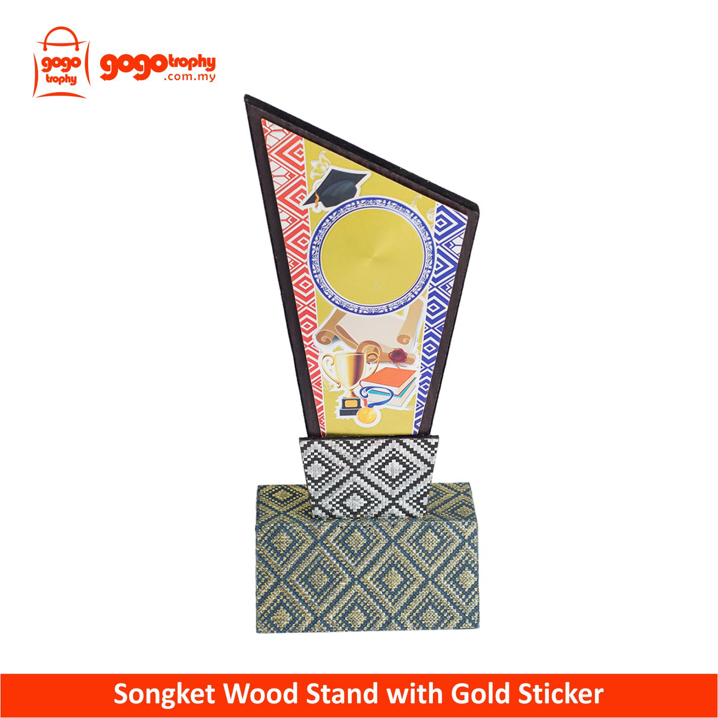 EP730 - Songket Wooden Stand With Gold Sticker . FREE PRINTING ! NOT INCLUDED POSTAGE YET...MOQ 10PCS ABOVE FOR THIS PRICE !!!