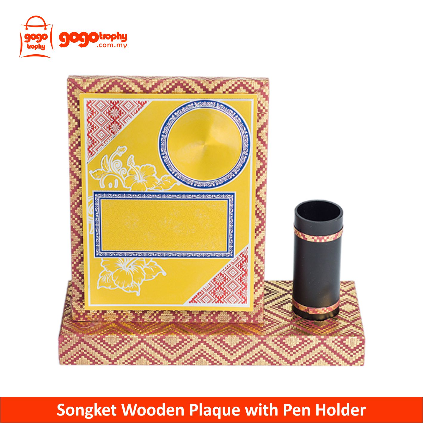 EP662 - Songket Wooden Plaque With Pen Holder . FREE PRINTING ! NOT INCLUDED POSTAGE YET...MOQ 10PCS ABOVE FOR THIS PRICE !!!
