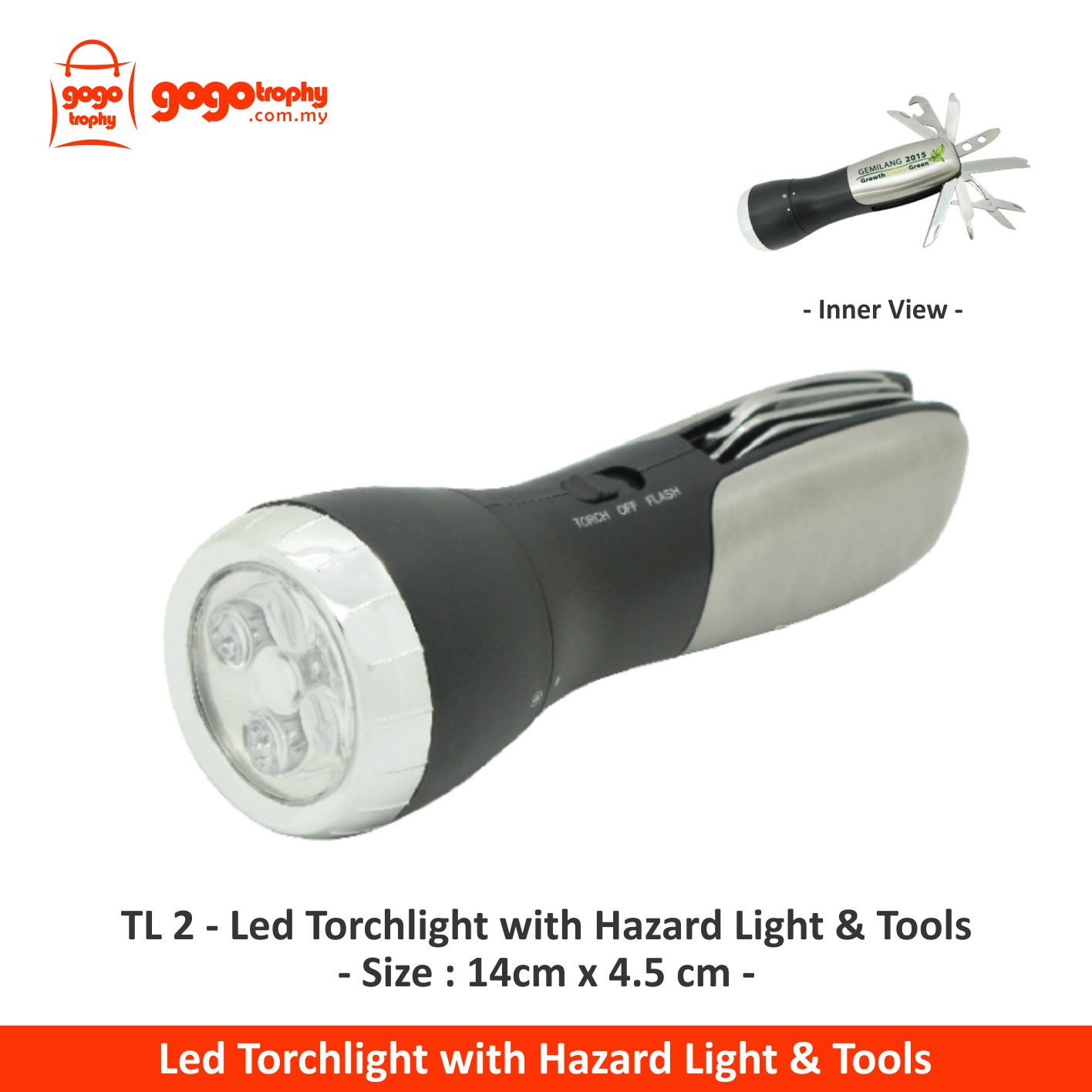 TL2 - Led Torchlight with Hazazrd Light & Tools pricing is per pcs without printing charges,if needed any additional for printing pls send us enquiry we will reply you as soon as possible . ASK FOR PRICE !