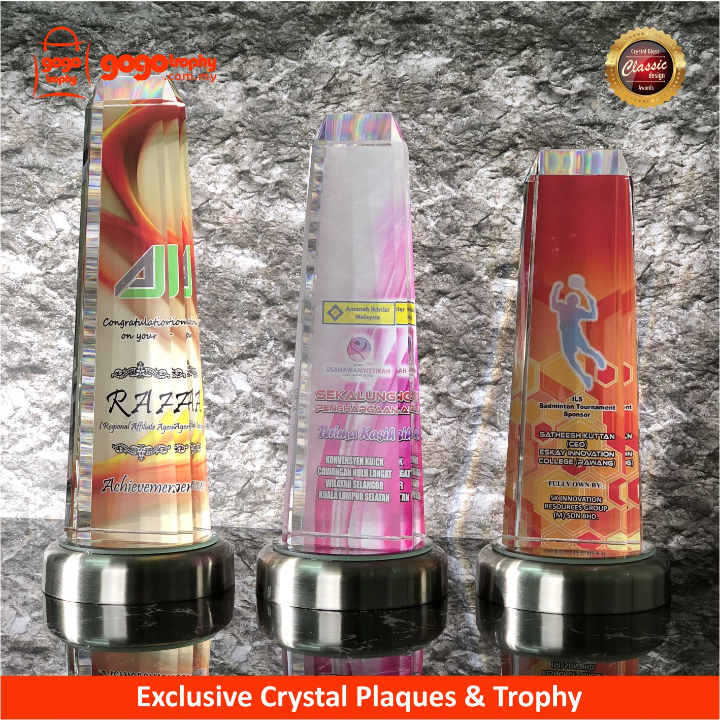 8313 Exclusive Crystal Trophy are the quality of the film that we used is one of the best . As such, the colors of the printing on the film will not be easily faded . FREE PRINTING !