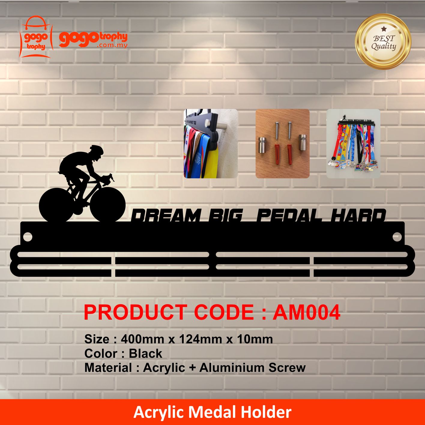 AM004 - ACRYLIC MEDAL HOLDER (CYCLING) - 129mm * 400mm * 10mm (