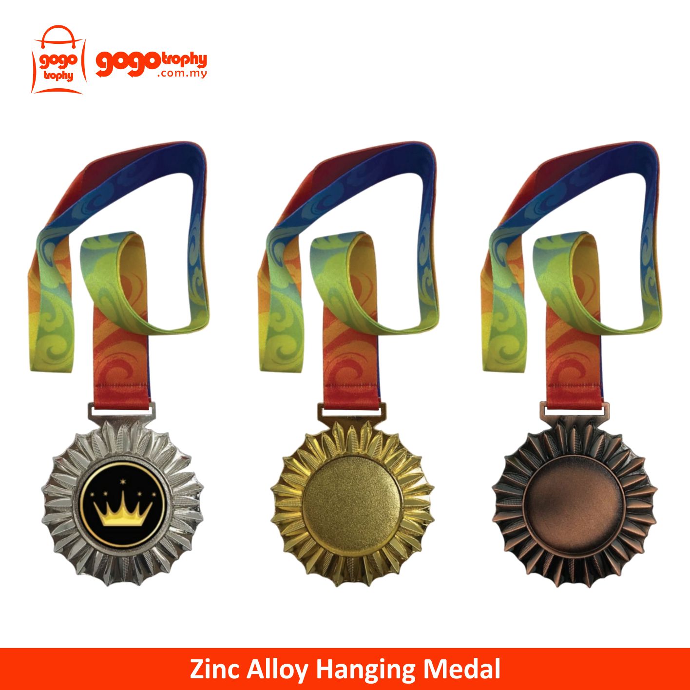 MT301 Hanging Medal Metal (GOLD, SILVER, BRONZE) Material : Zinc Alloy. FREE PRINTING !