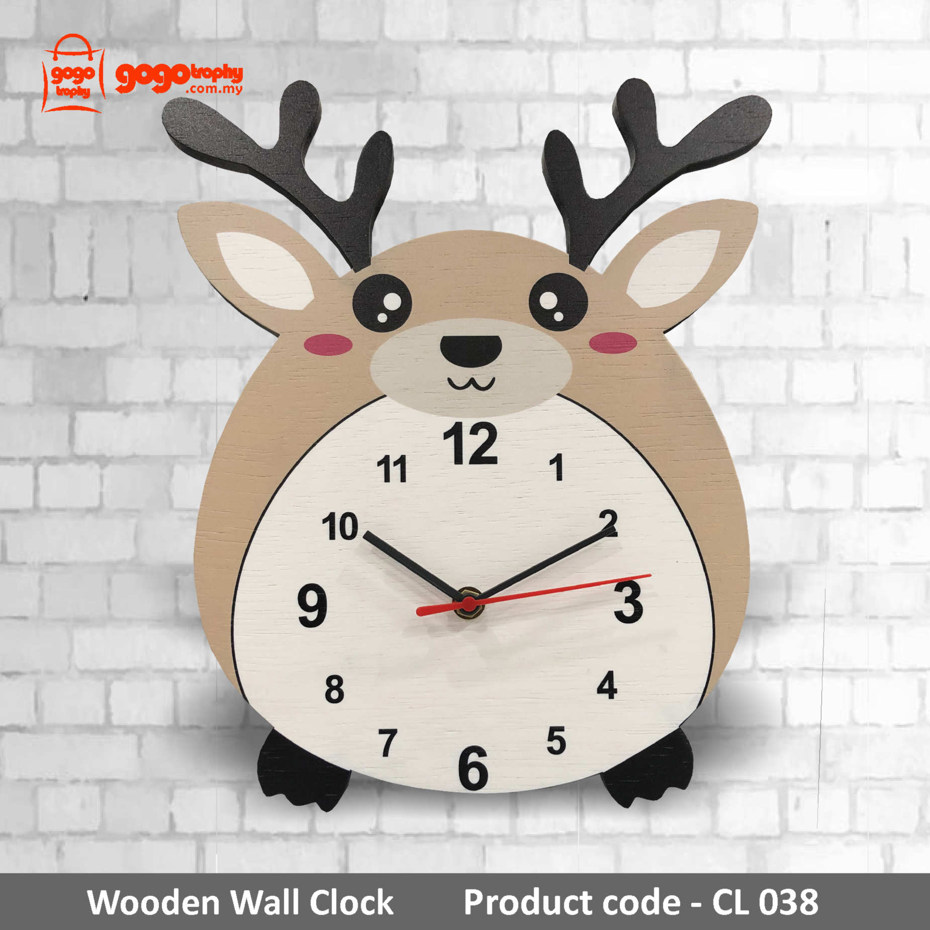 CL038 - Wooden Wall Clock (Deer) - 305mm * 255mm * 8mm (