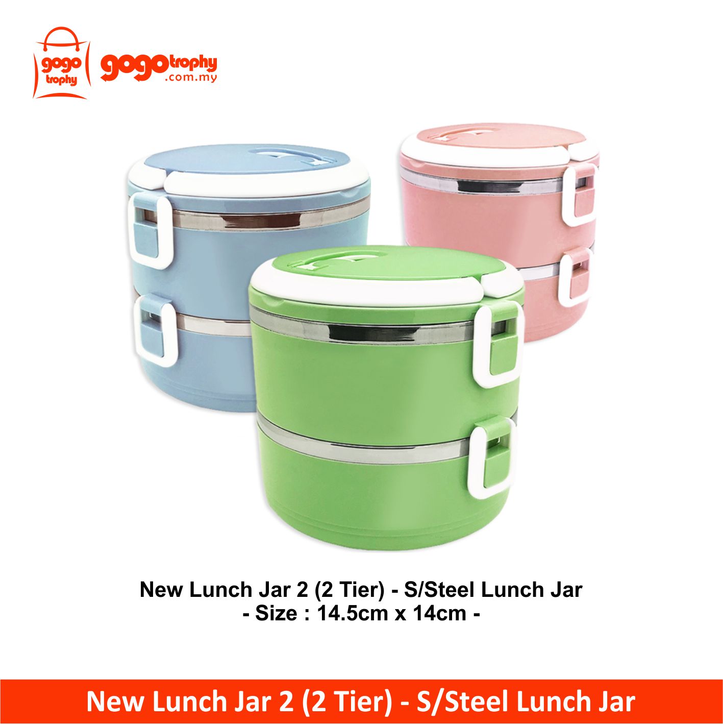 New Lunch Jar 2 (2 Tier) - S/Steel Lunch Jar pricing is per pcs without printing charges,if needed any additional for printing pls send us enquiry we will reply you as soon as possible . ASK FOR PRICE !