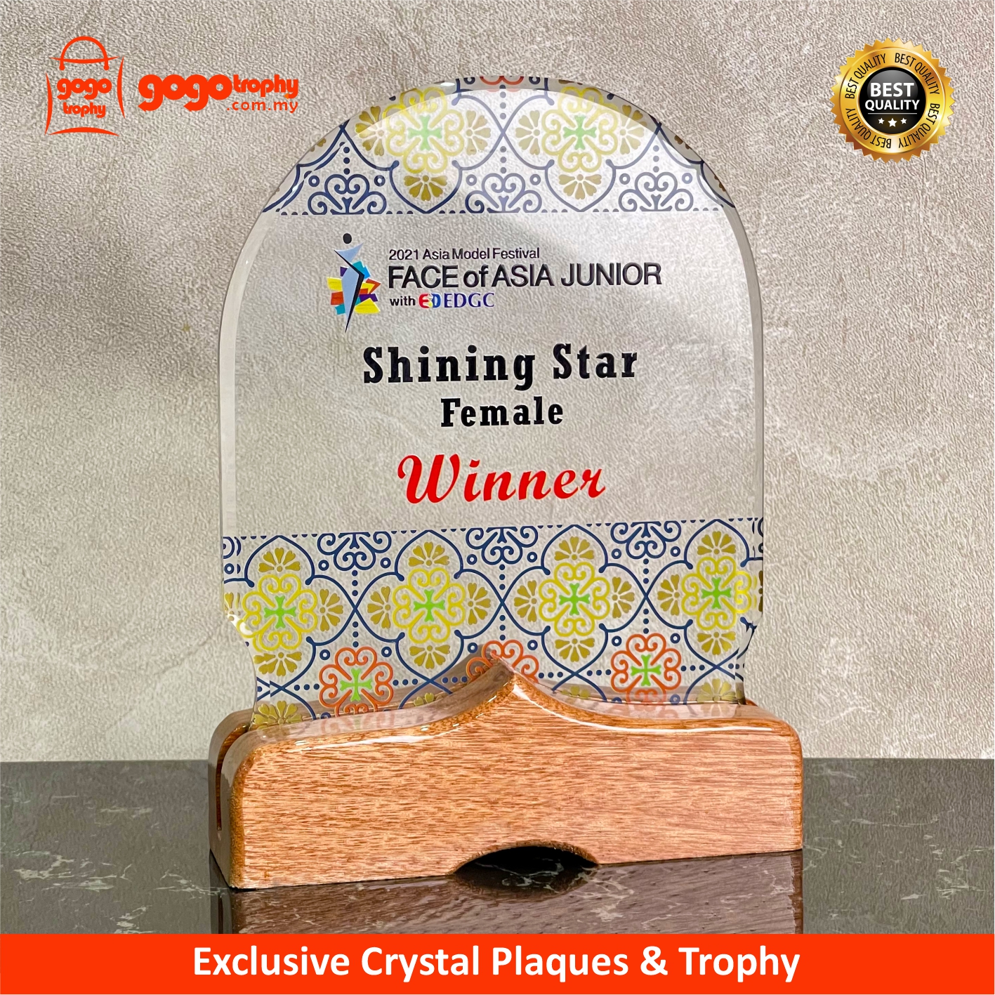3124 Exclusive Wooden Crystal Plaque the new mixtures highly-performance hybrid technologies with combination of UV-LED EMBOSS PRINTING will feature it's own special touch feeling and unique colours finished product . The noble qualities of the products will bring englightenment and will be loved by the consumers . FREE UV EMBOSS PRINTING !