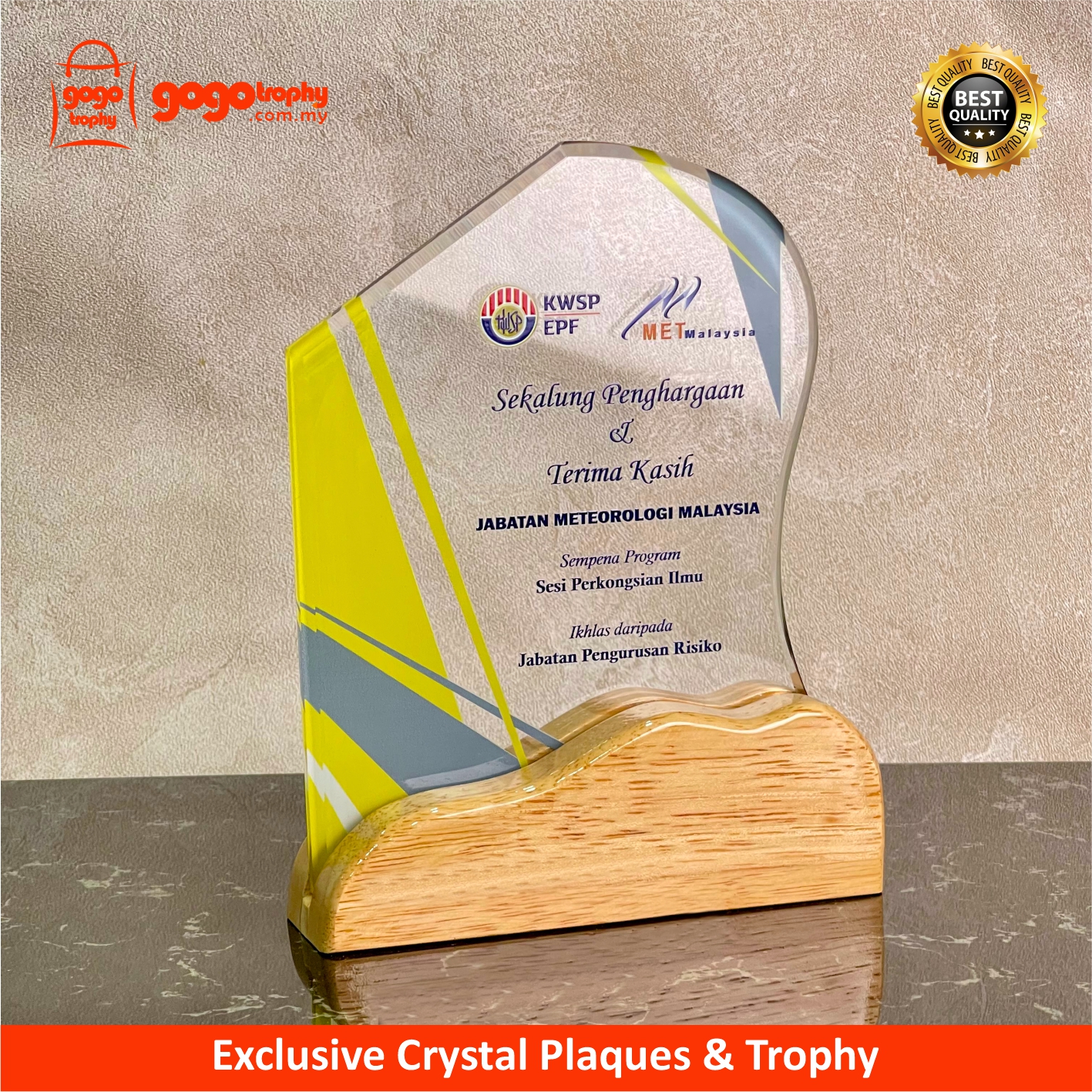 3126 Exclusive Wooden Crystal Plaque the new mixtures highly-performance hybrid technologies with combination of UV-LED EMBOSS PRINTING will feature it's own special touch feeling and unique colours finished product . The noble qualities of the products will bring englightenment and will be loved by the consumers . FREE UV EMBOSS PRINTING !