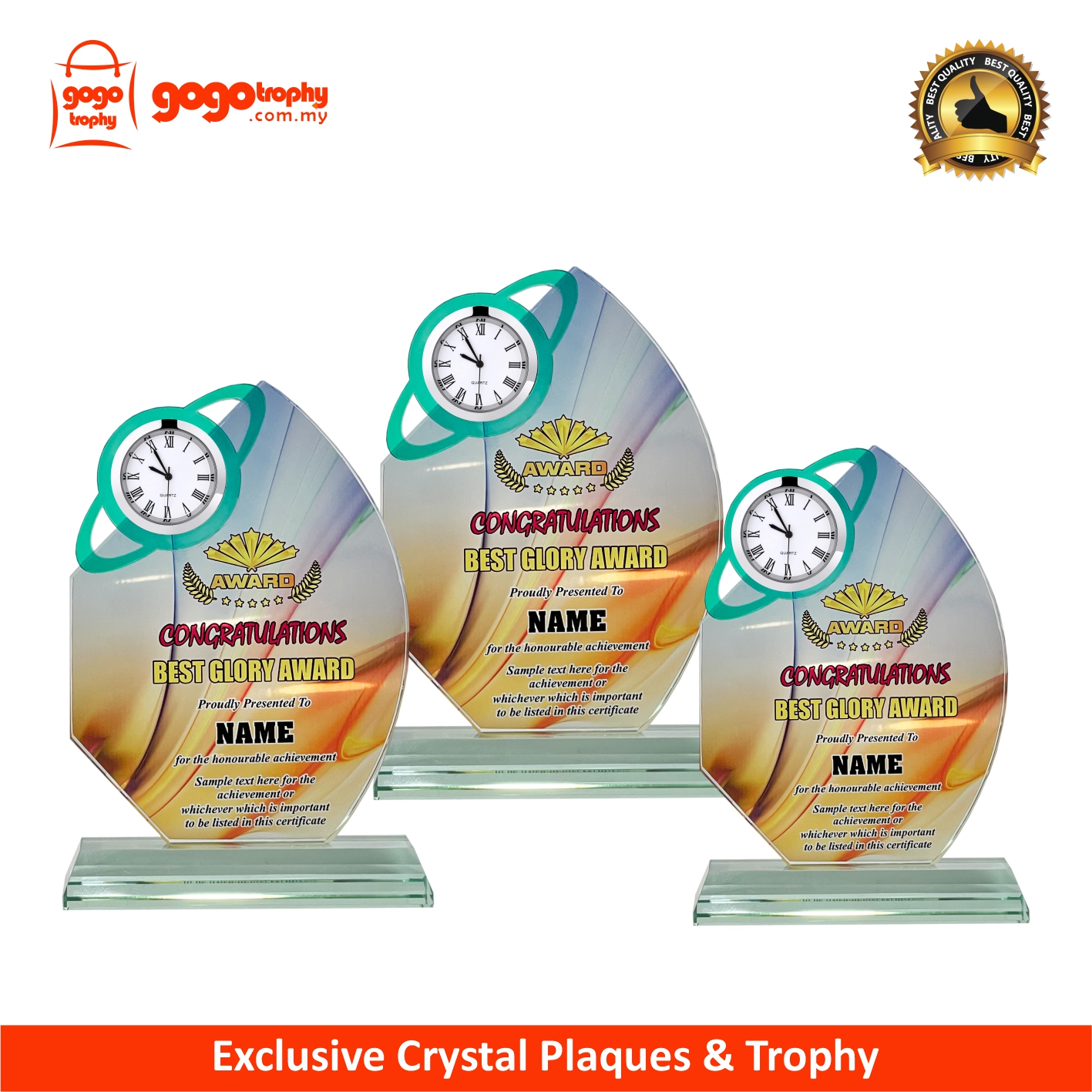 2075 Crystal Plaque c/w Clock Series with background artwork and the top quality clock to ensure you an accomplish crystal clock gift . FREE PRINTING !