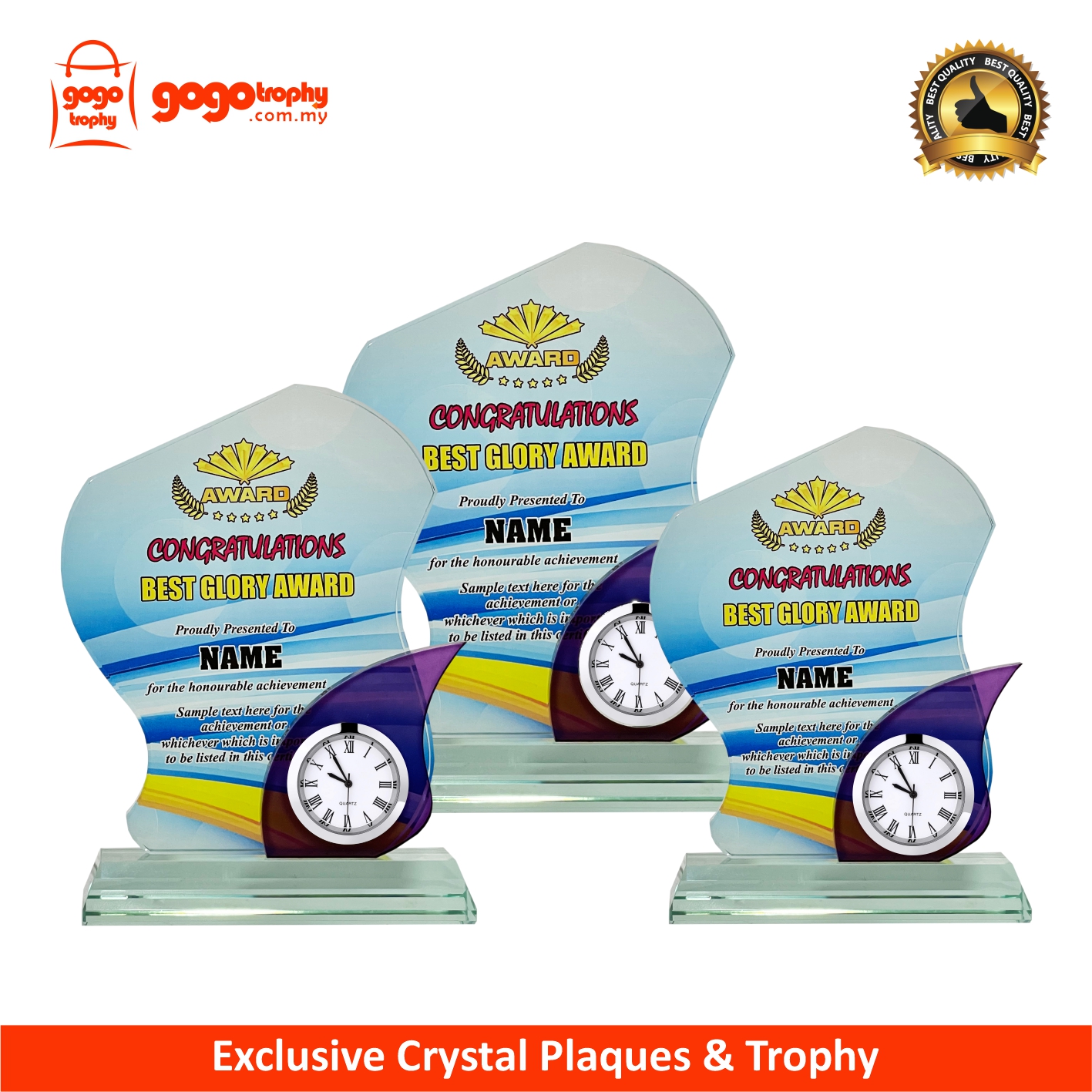 2077 Crystal Plaque c/w Clock Series with background artwork and the top quality clock to ensure you an accomplish crystal clock gift . FREE PRINTING !